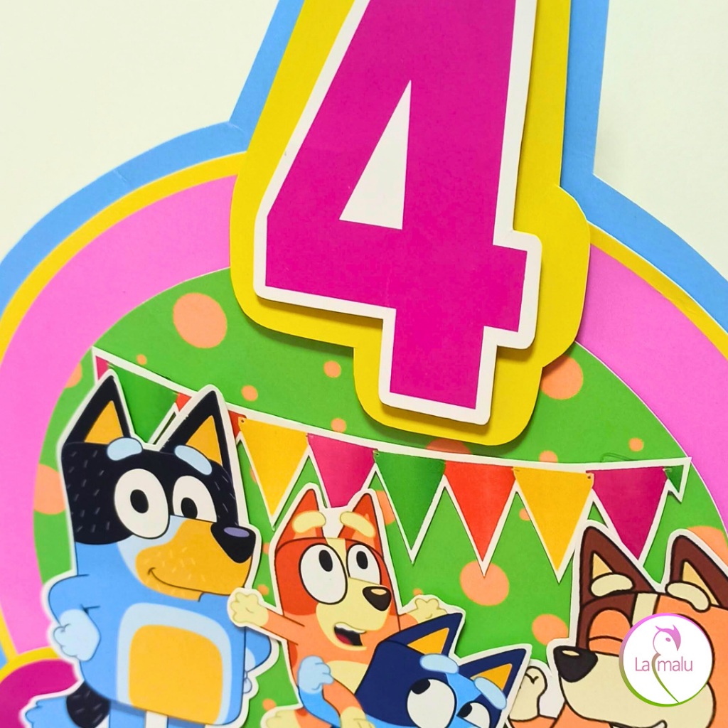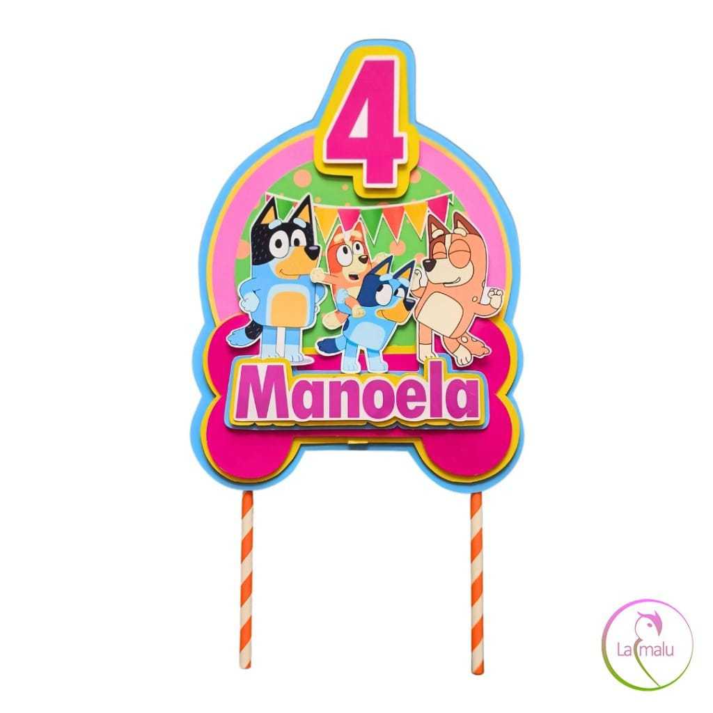 Topper/Topo para Bolo Simples Tema BLUEY e Família - Papel Fotográfico Glossy 230g