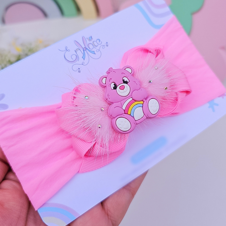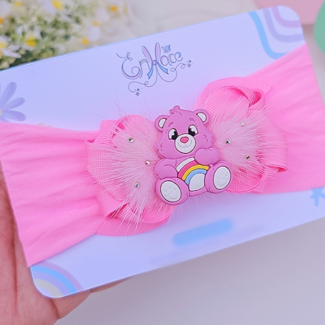 Laço Ursinhos Carinhosos Rosa Presilha infantil Faixa Larga Turbante de Bebê, Acessório de Cabelo