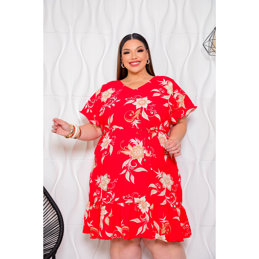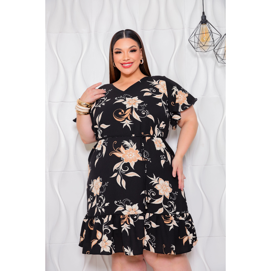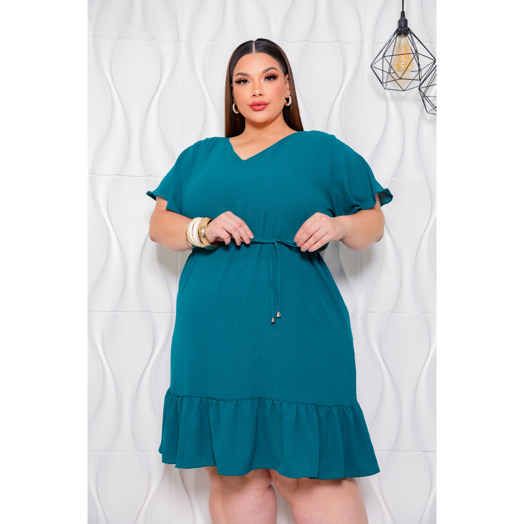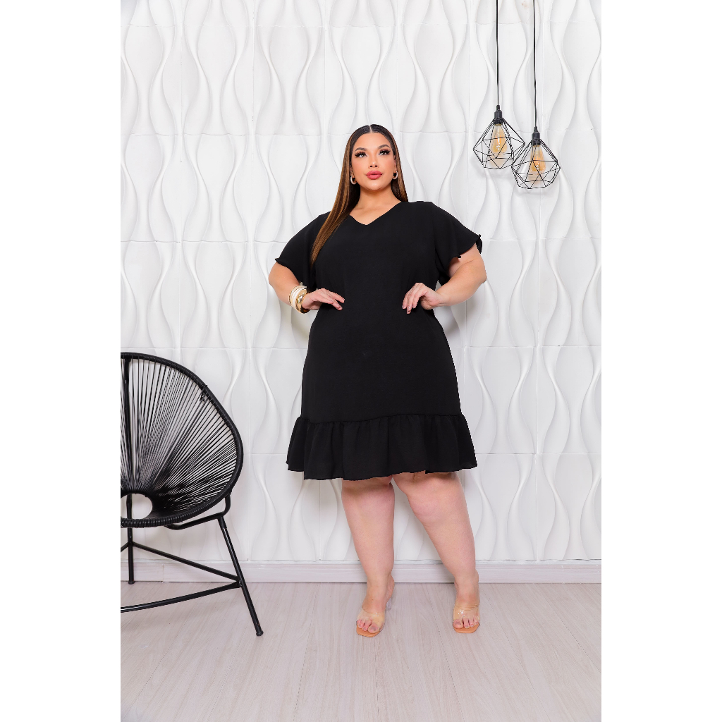 Vestido Plus Size de Manga Tecido Duna e Viscolinho