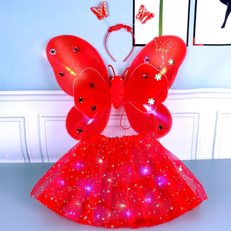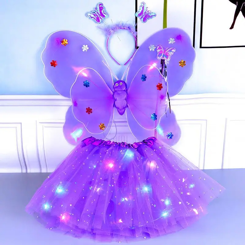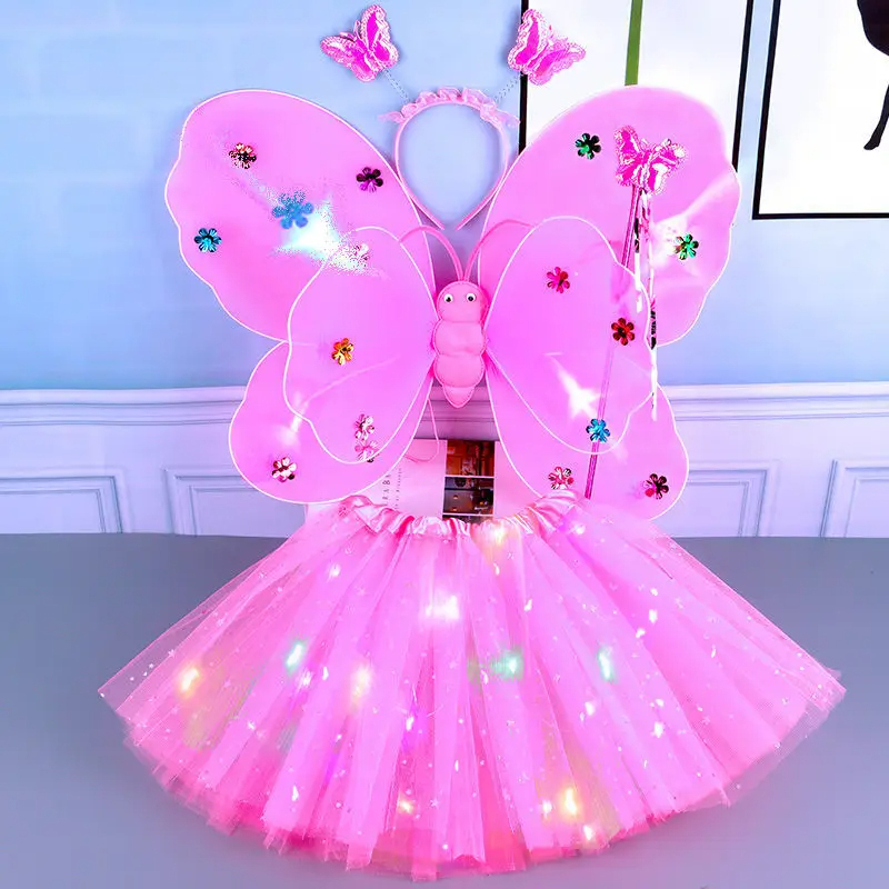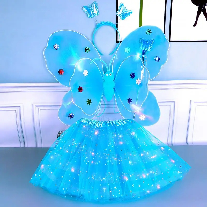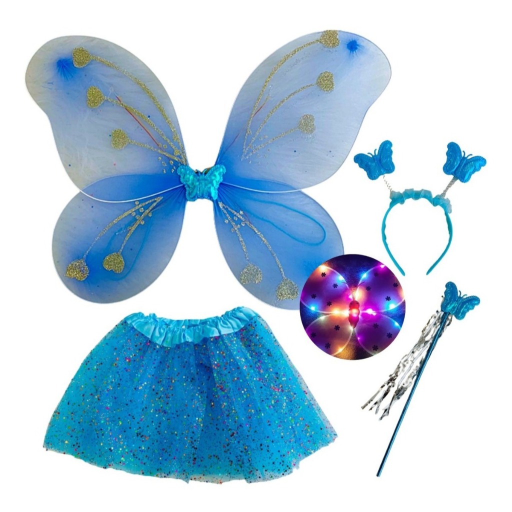 Kit Fada LED Saia + Tiara + Asa LED + Varinha - Pisca Pisca Fantasia Festa / Carnaval