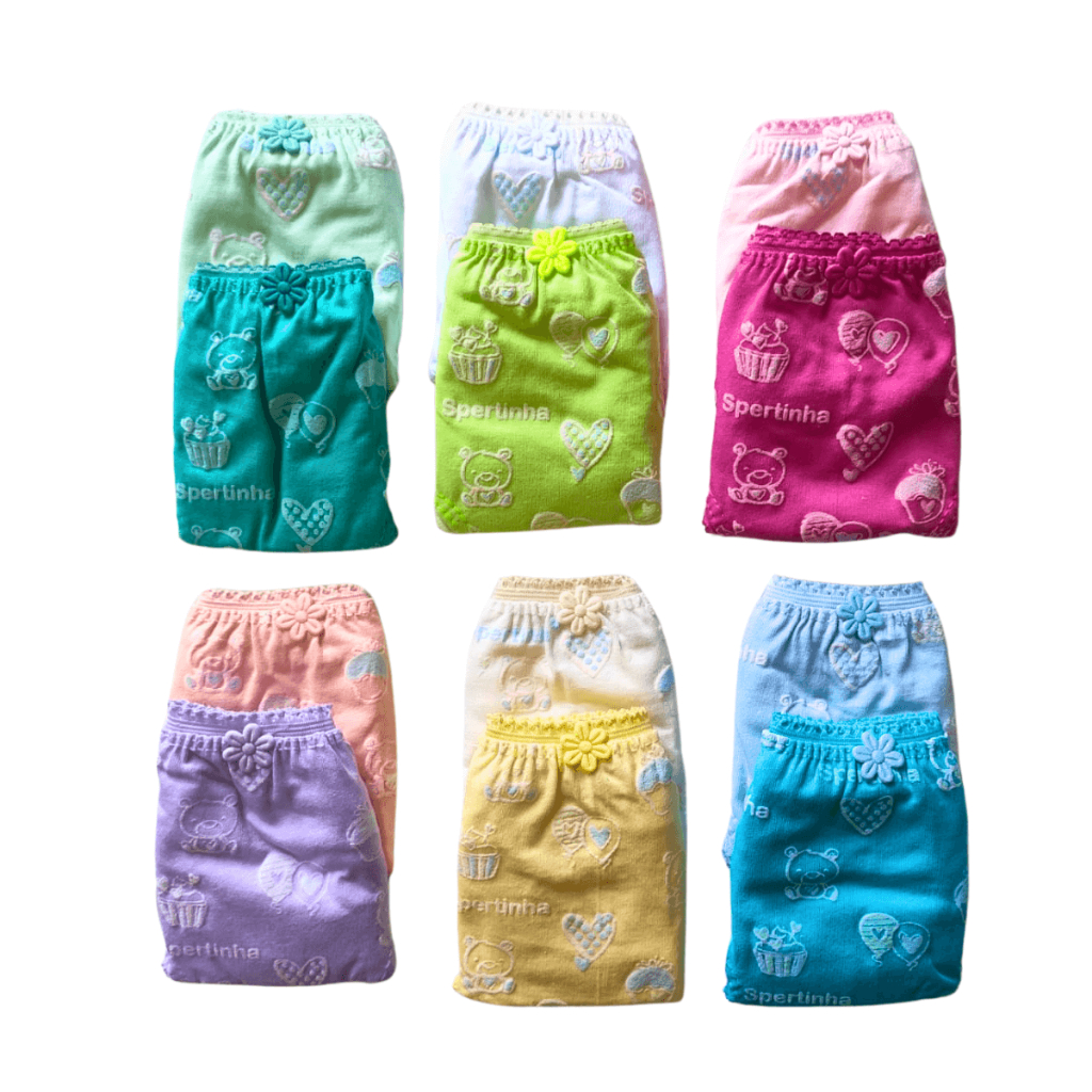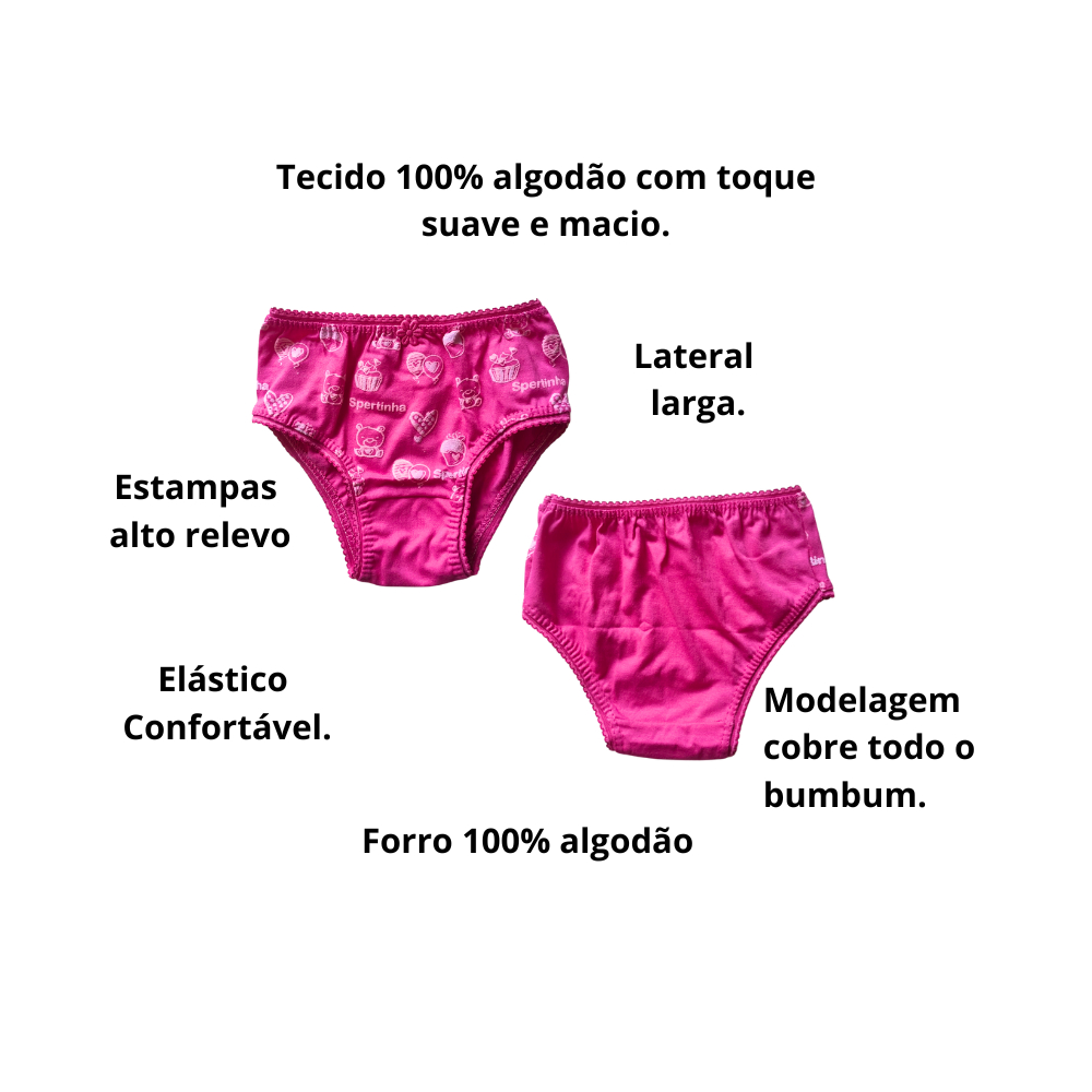 Kit Calcinha Infantil Menina Algodão Premium Lisa com Forro 100% Algodão Respirável P M G GG