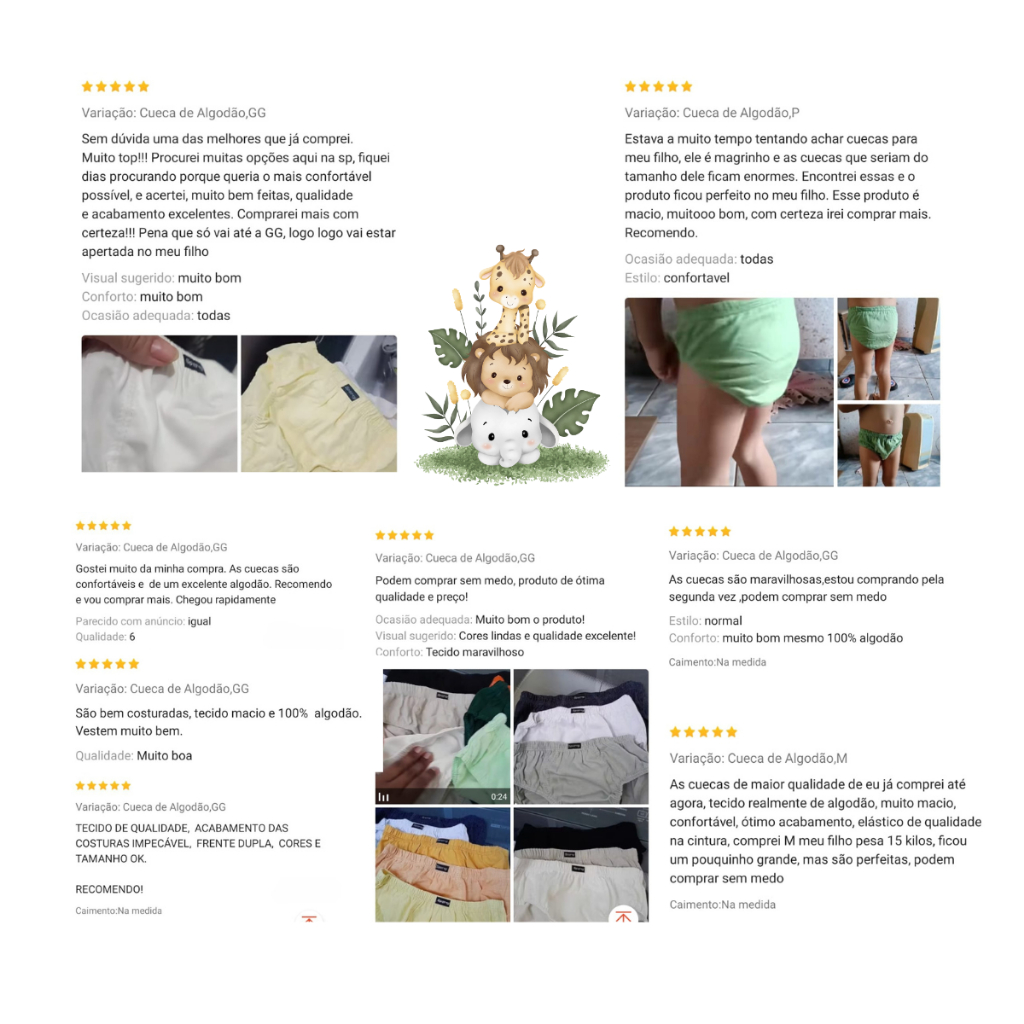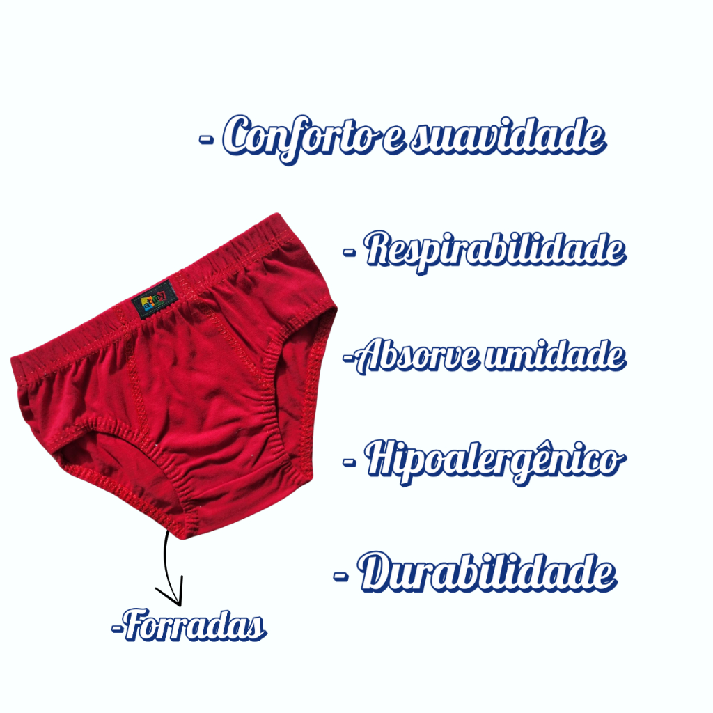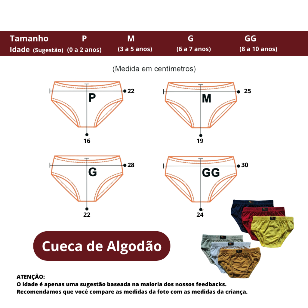Kit Cueca Algodão P M G GG Infantil Antialérgico Kit 10-5 ceucas slip masculina Juvenil