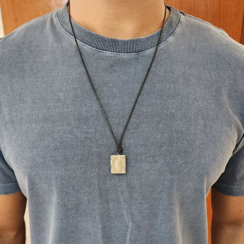 Colar Relicário Cordão Masculino com Foto Presente Feminino Casal Namorado Pet