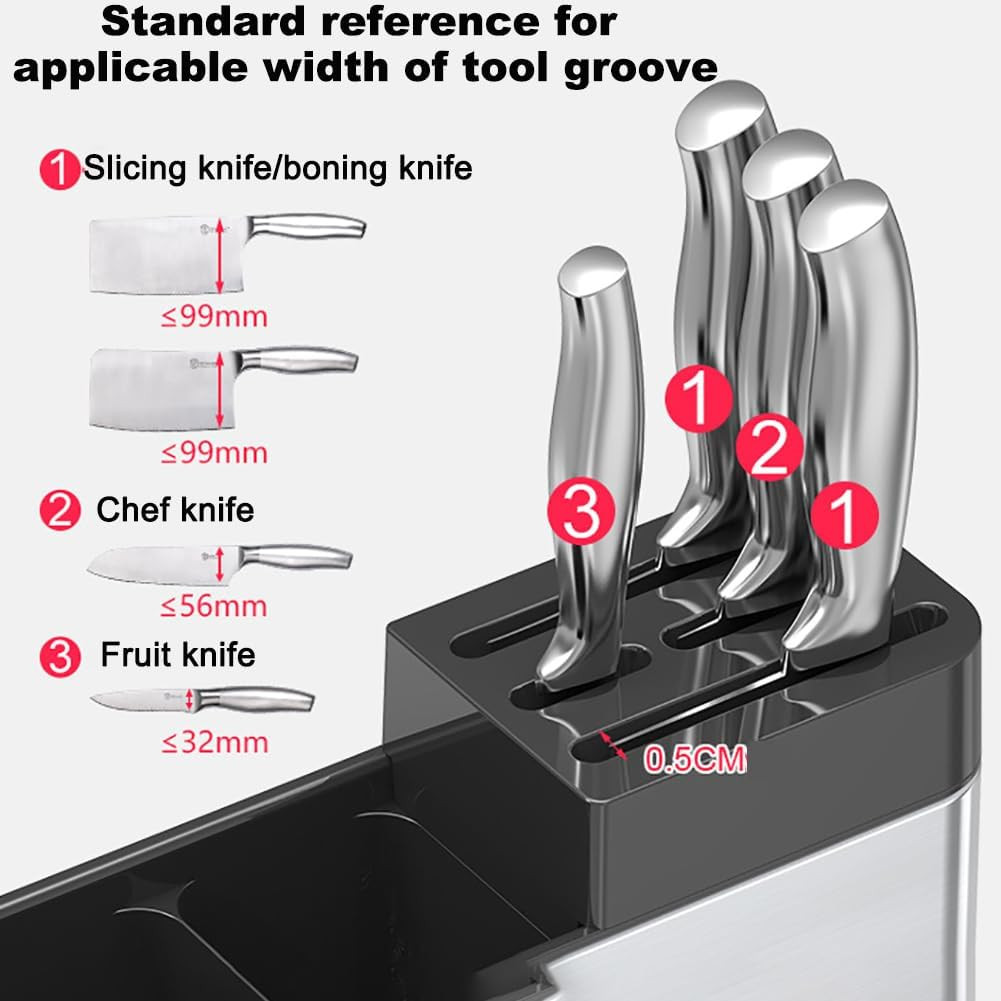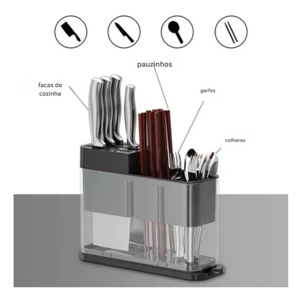 Escorredor Porta Talher Inox Com Suporte De Facas Cepo