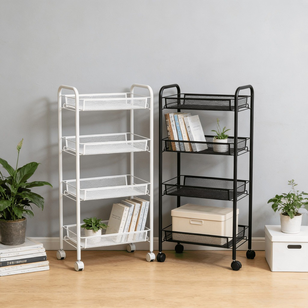 Carrinho Organizador Metal Multiuso Fruteira Organização em Aço Carbono com Rodinhas 4 prateleiras