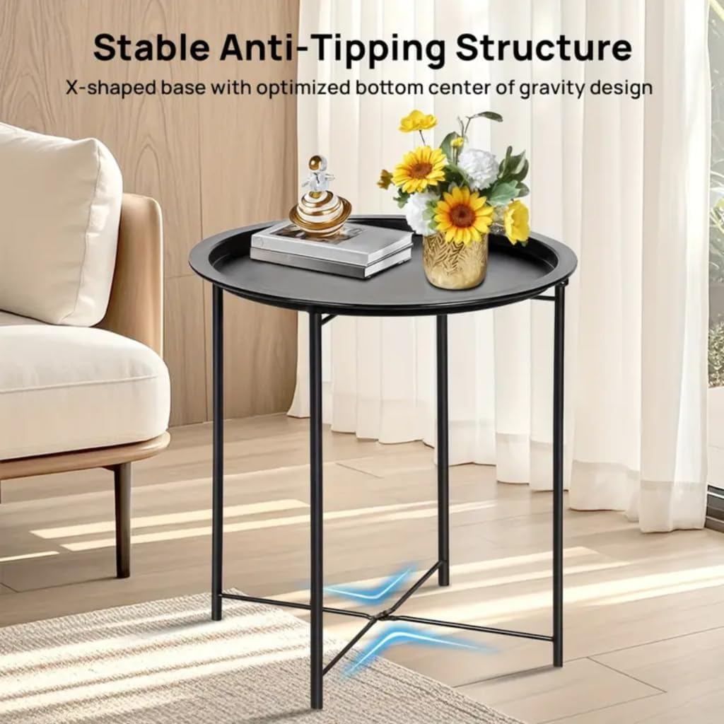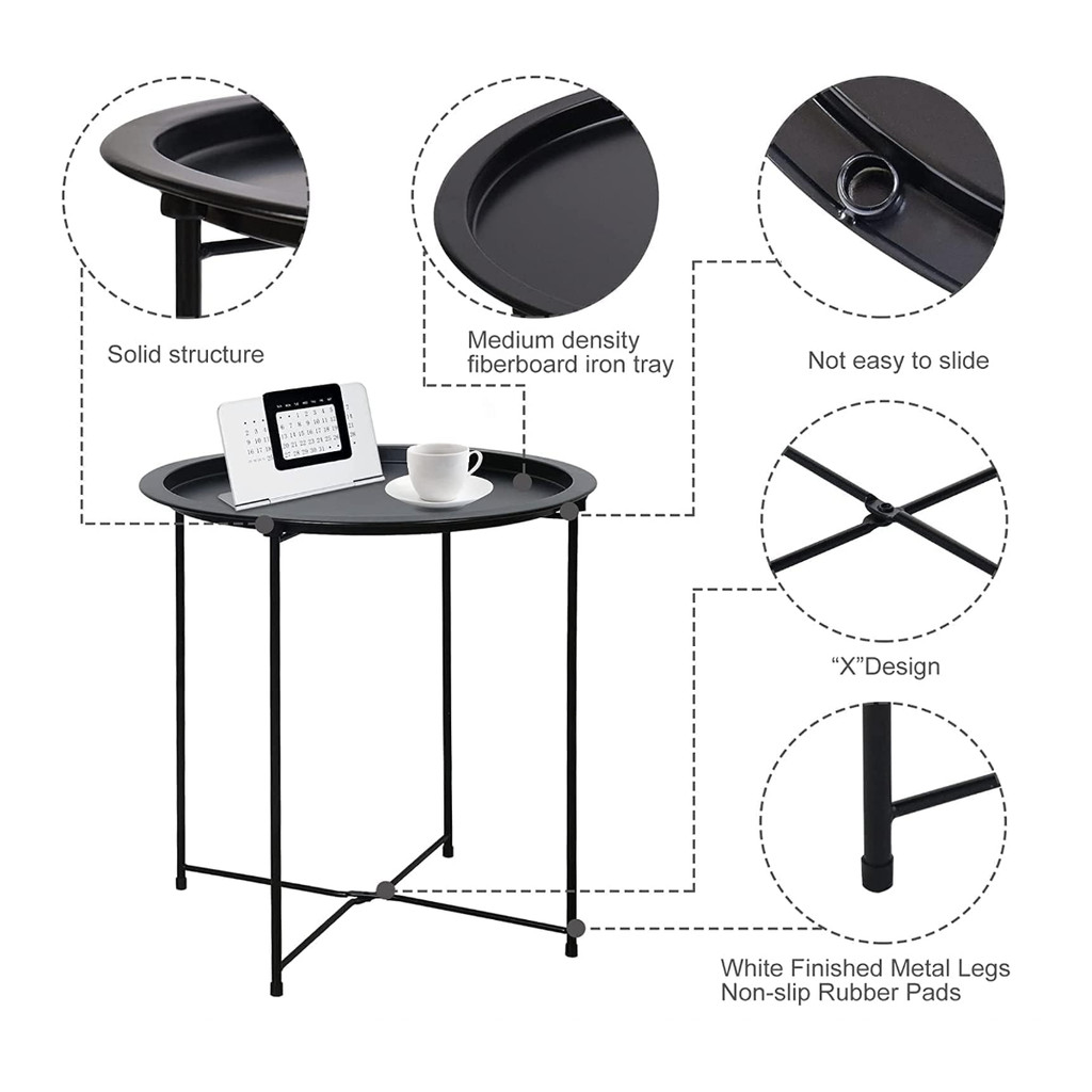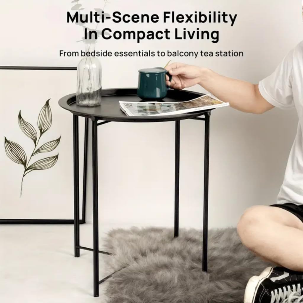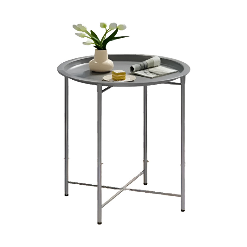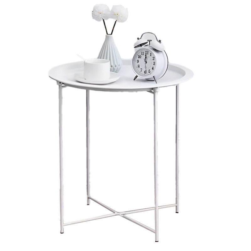 Mesa Redonda Lateral Bandeja Removível Metal Dobrável