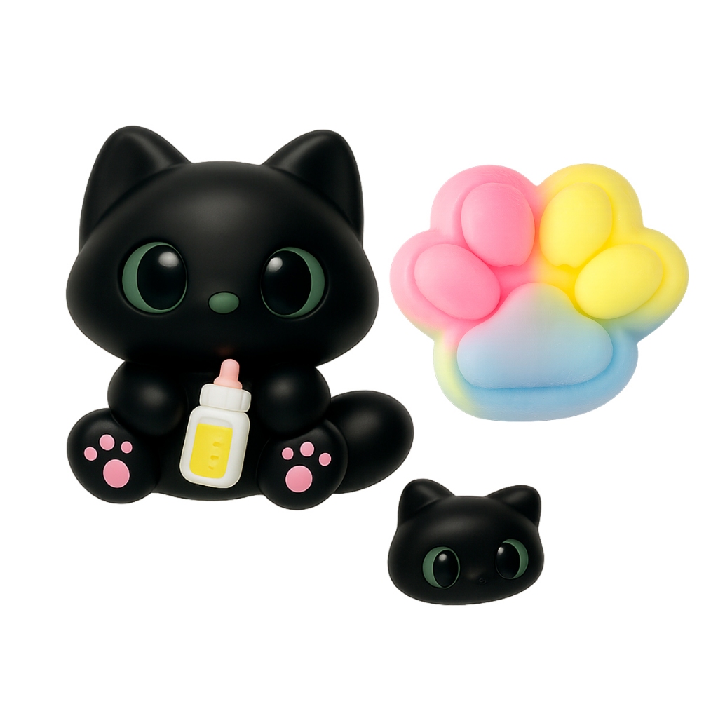 Kit 3 Taba Squishy Gato Fofo – Gatinho Brinquedos Antiestresse Estilo Kawaii
