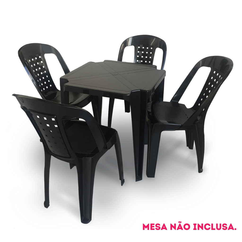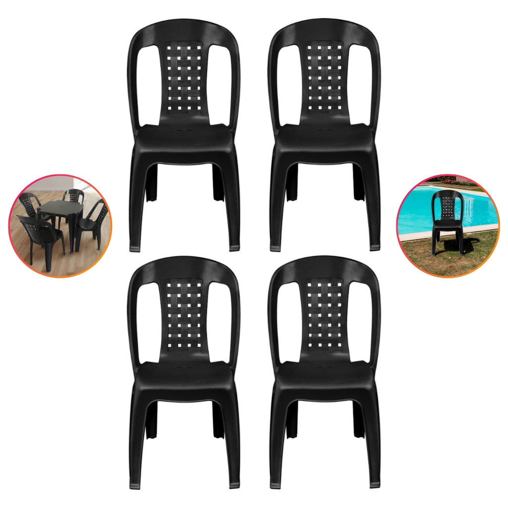 Kit 4 Cadeiras de Plástico Resistente 154 Kg P/ Igreja Lanchonete Bar Jardim