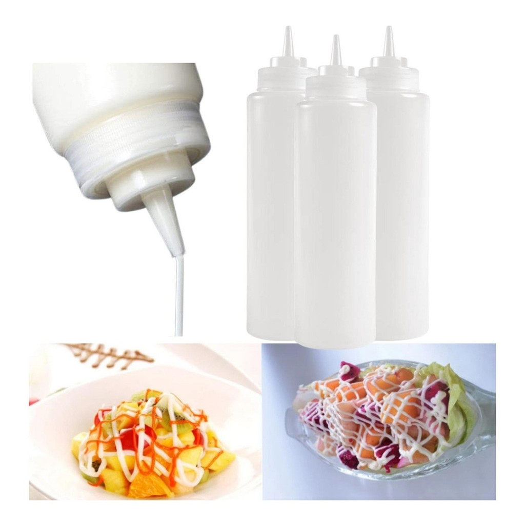 Kit 3 Bisnagas 1 Litro Grandes Para Molhos Vinagre Azeite Cremes Donuts Coberturas