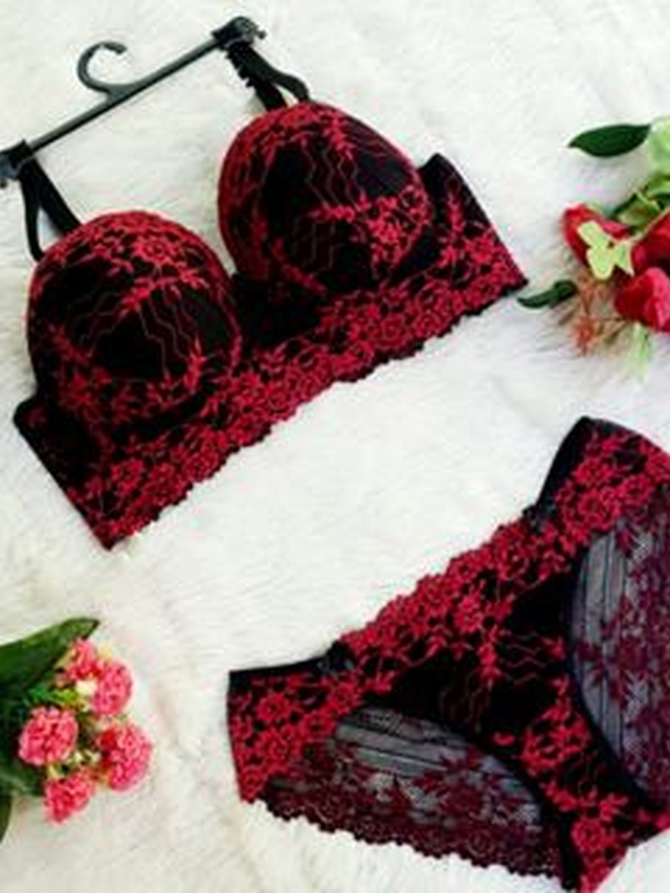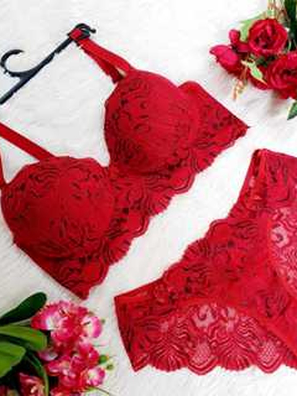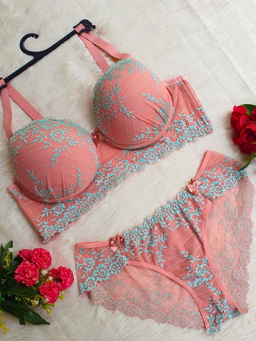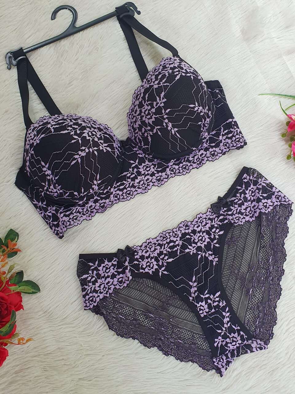 Kit Com 5 Conjuntos Lingerie Plus Size Renda Bicolor Bojo