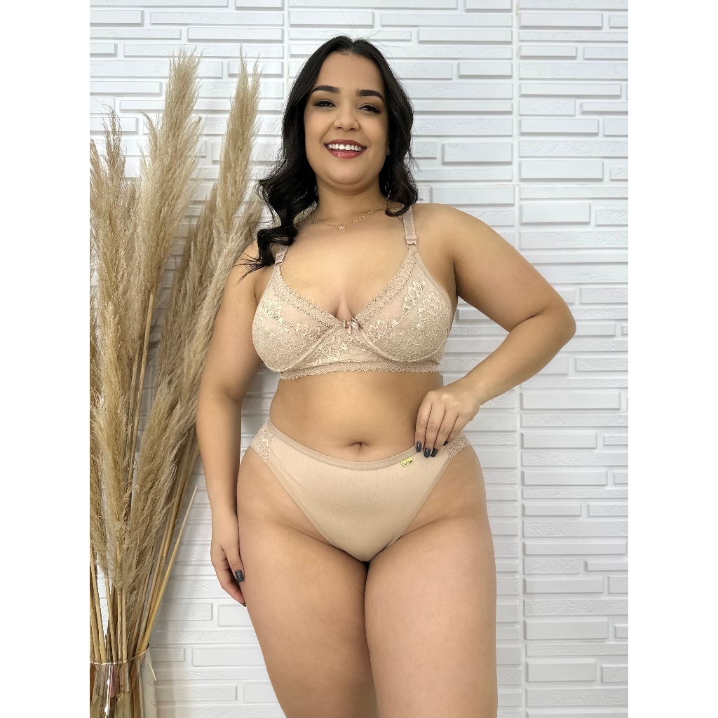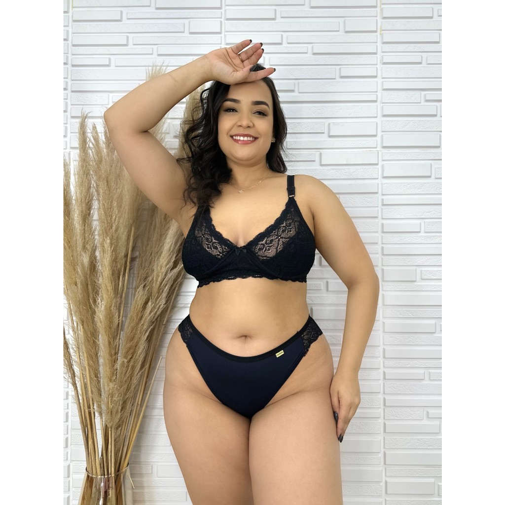 Conjunto Plus Size Sem Bojo Reforçado Alças Largas Sutiã Renda Calcinha Conforto Rendada E Microfibra Premium