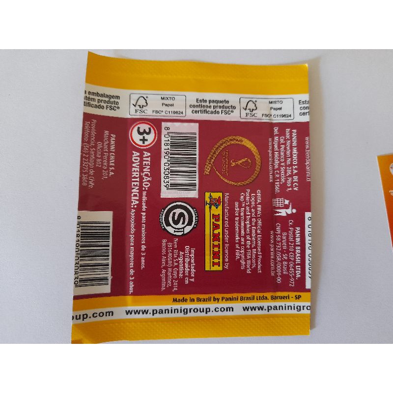 Envelope de figurinhas dourado Copa 2022 versão Sulamericana verso rosa.