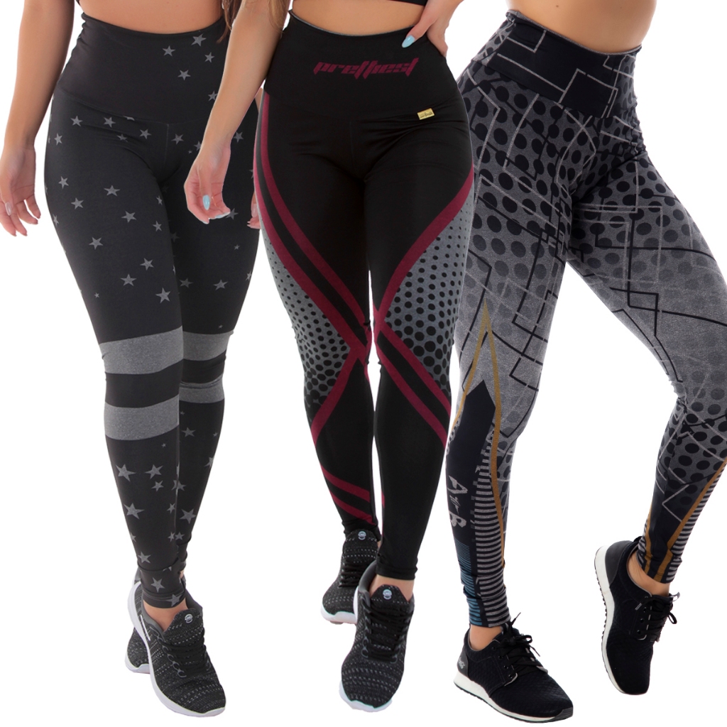 Kit de 3 Leggings Fitness Academia Calça Legging 0% Transparente