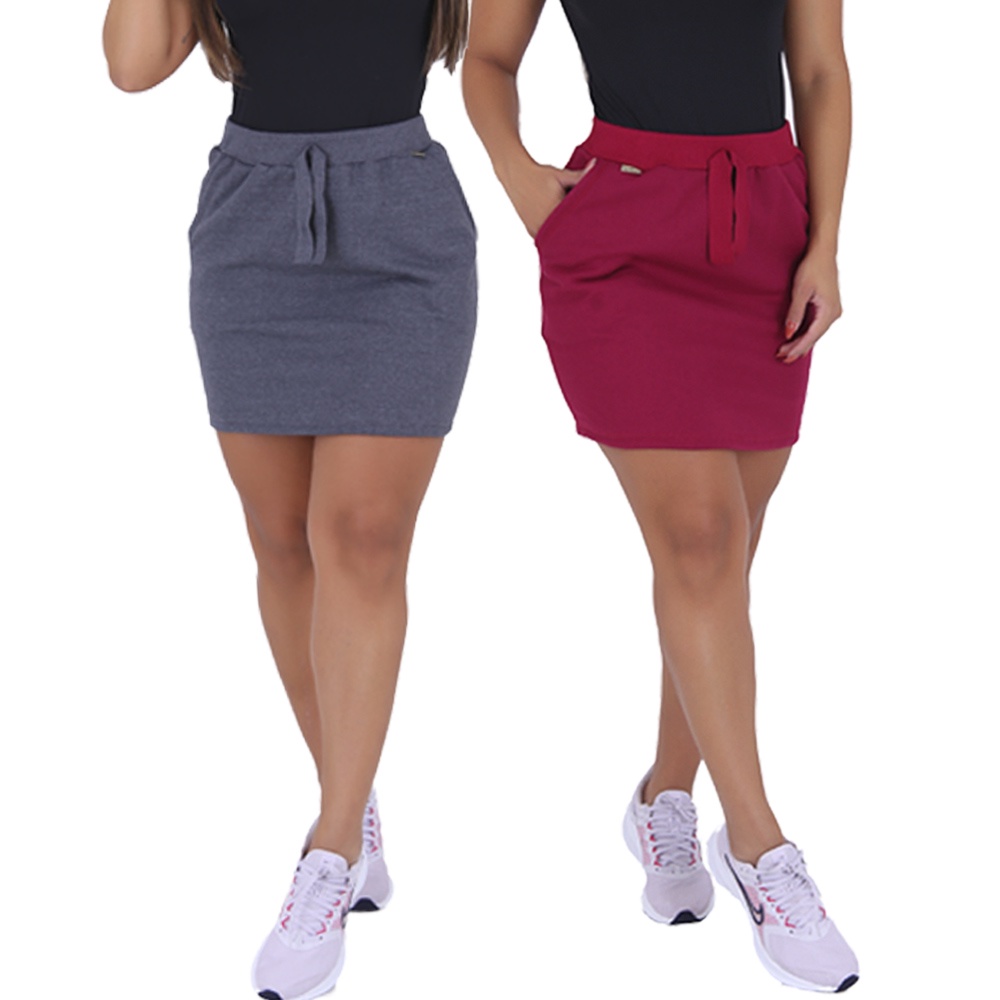 Kit 2 Saias de Moletom de Algodão Ocasional com Bolsos
