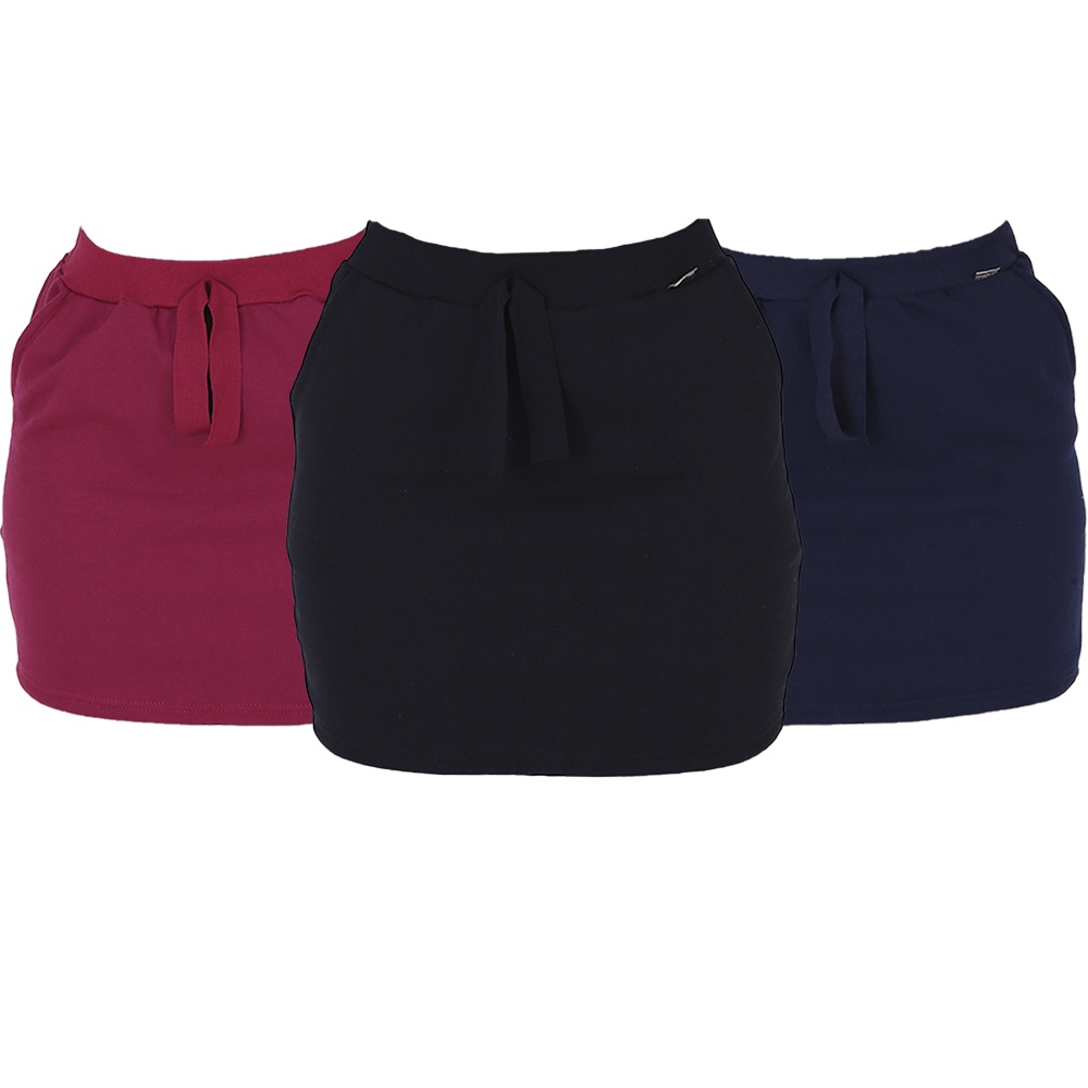 Kit de 3 Saias Moletom Peluciado Algodão com Bolso Midi