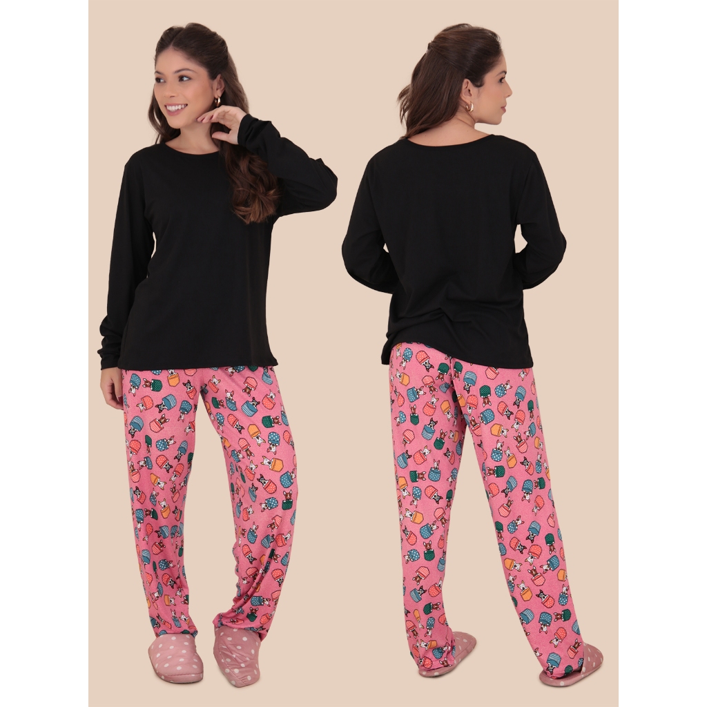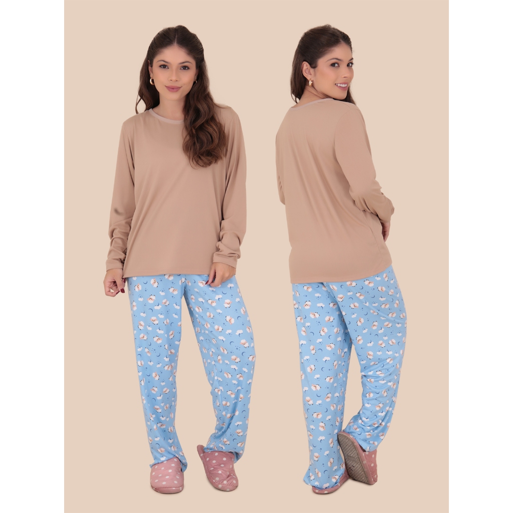 Pijama Sonho Manga Longa Suede Felpado Outono Inverno