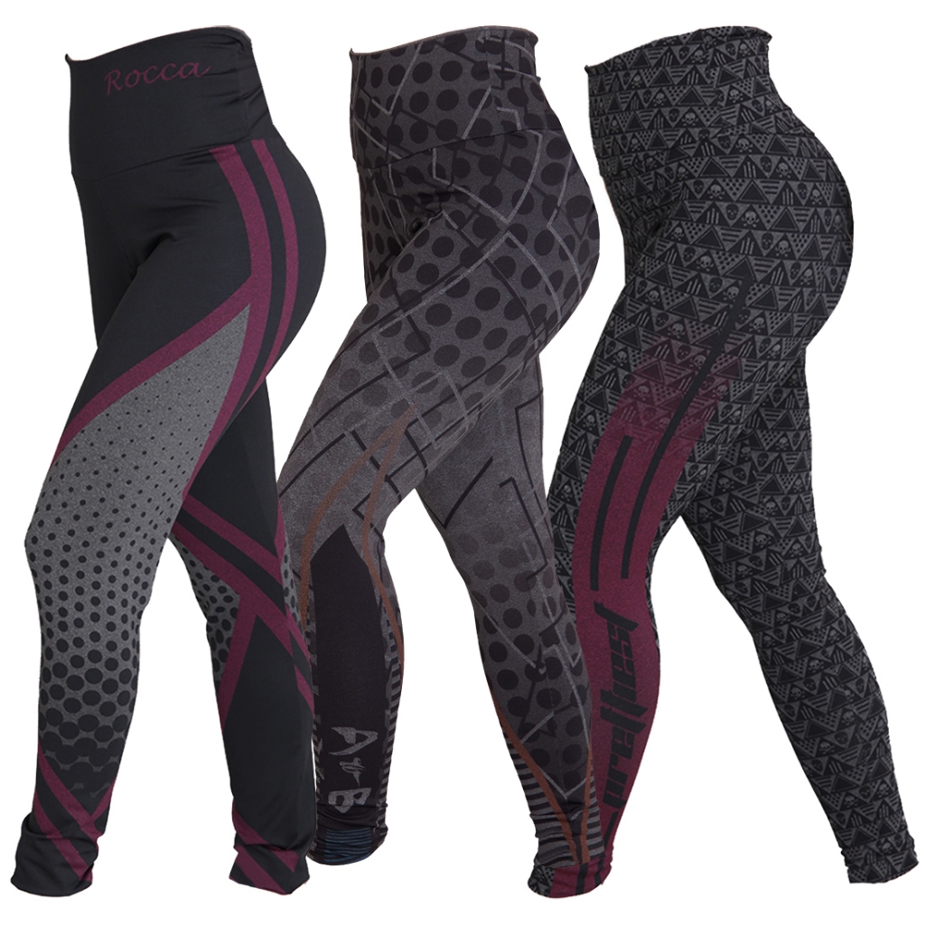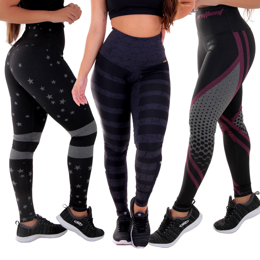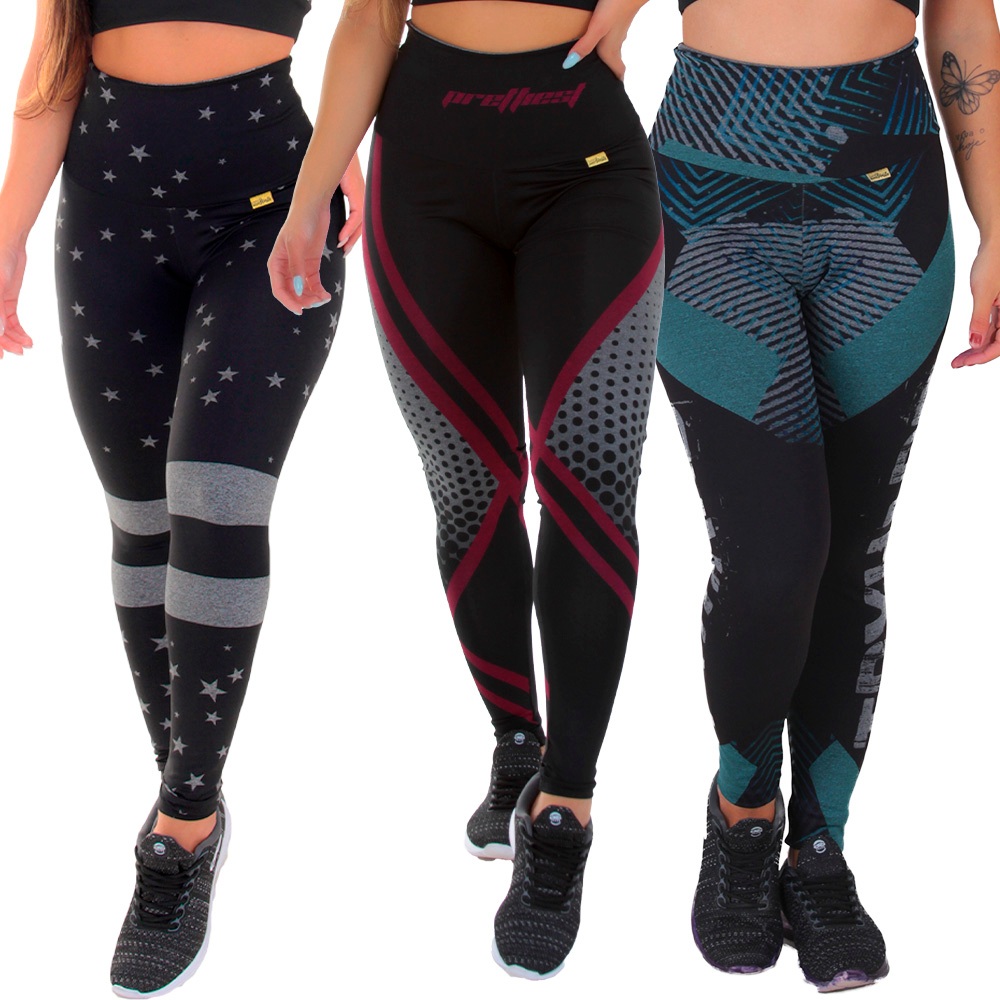 KIT 3 Leggings Sem Transparência Mescla Sublimadas Moda Feminina Fitness