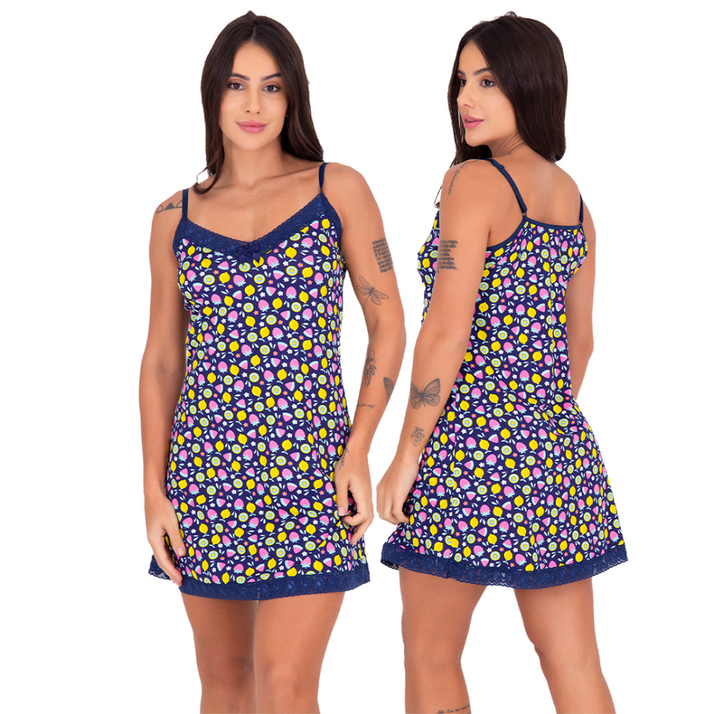 Camisola Luiza Microfibra com renda Vestidinho de Dormir