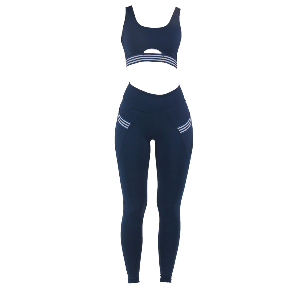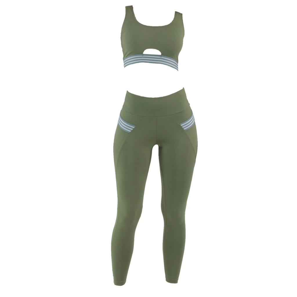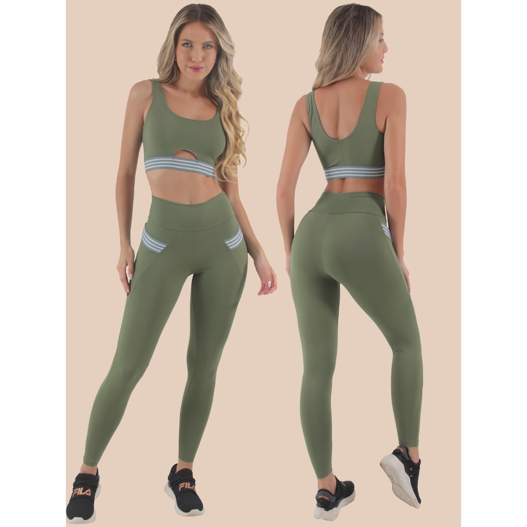 Conjunto Calça Legging + Top Feminino Fitness Poliamida Rocca com Bolsos