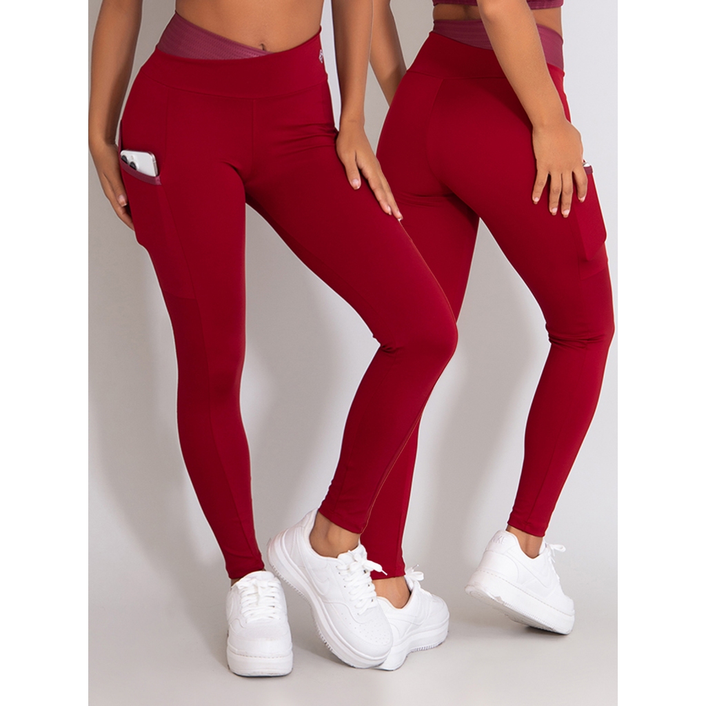 Calça Feminina Poliamida Legging Bolso Recorte 3D Yoga-Corrida