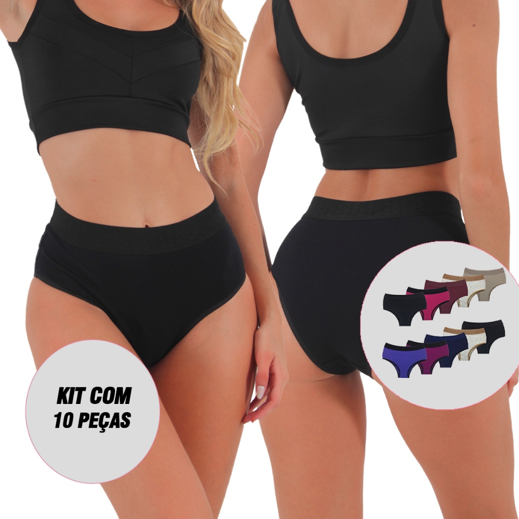 Kit 10 Calçolas Cintura Alta Caribe Algodão Penteado Lingerie Cotton