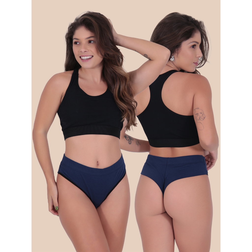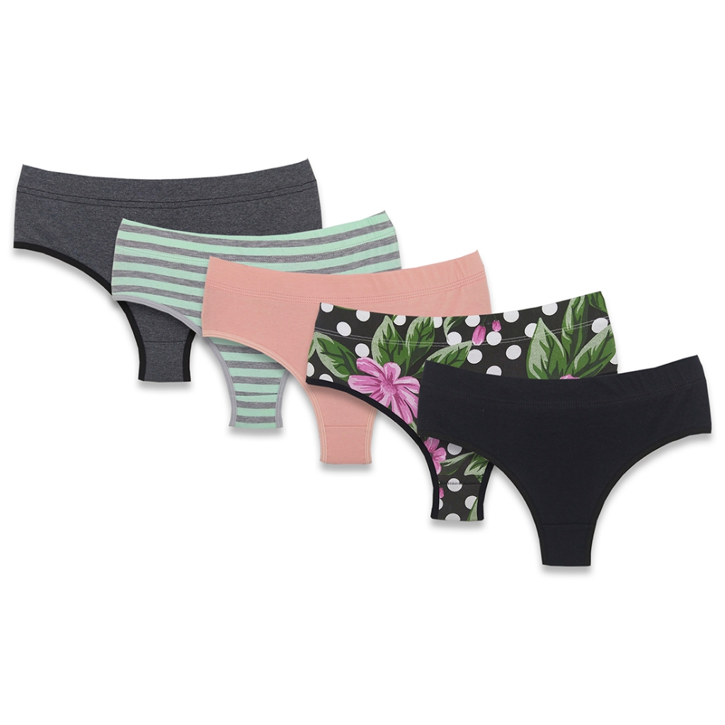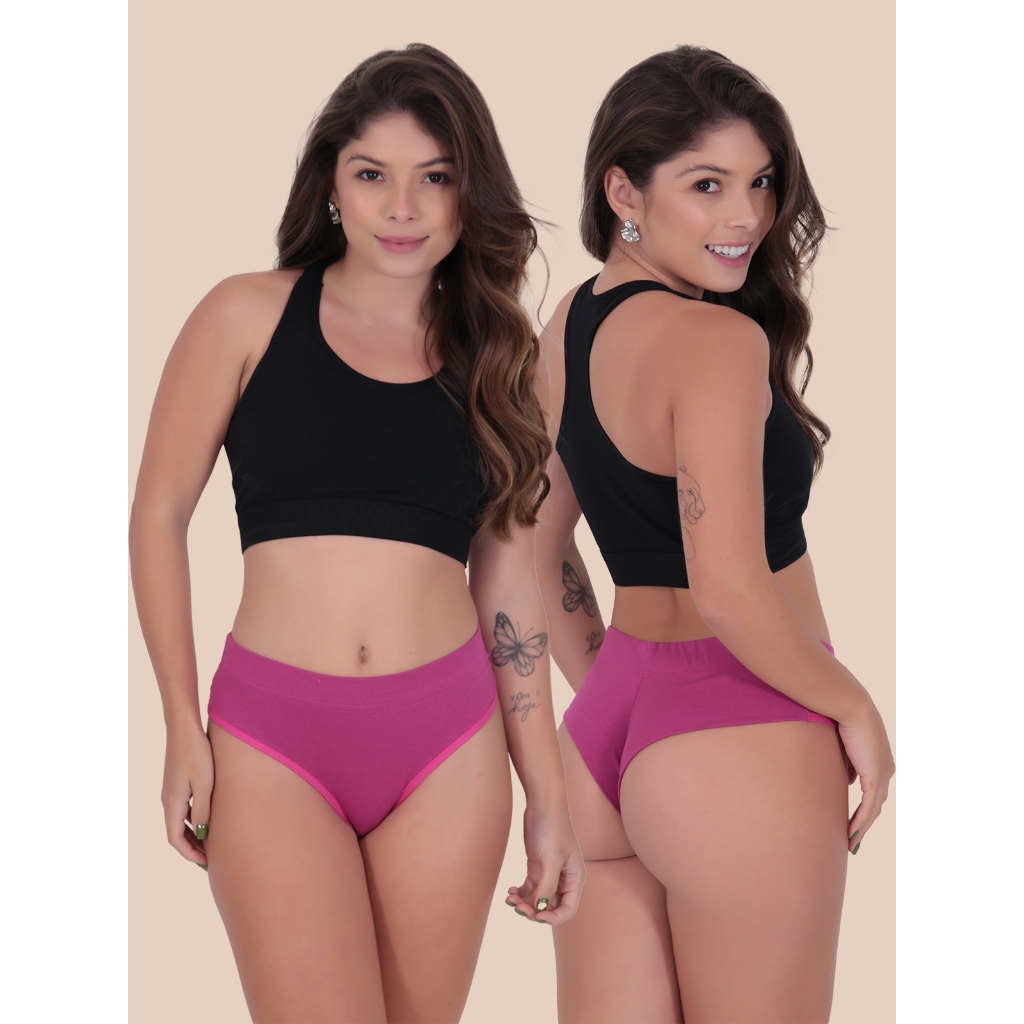KIT 5 Calcinhas Tangas Fio Duplo Cintura Alta de Algodão Lingerie