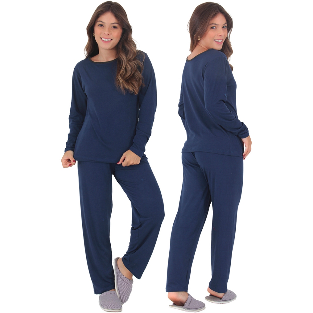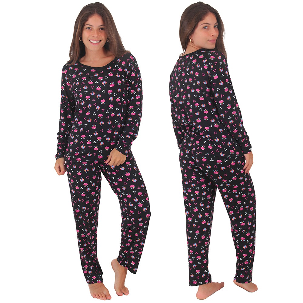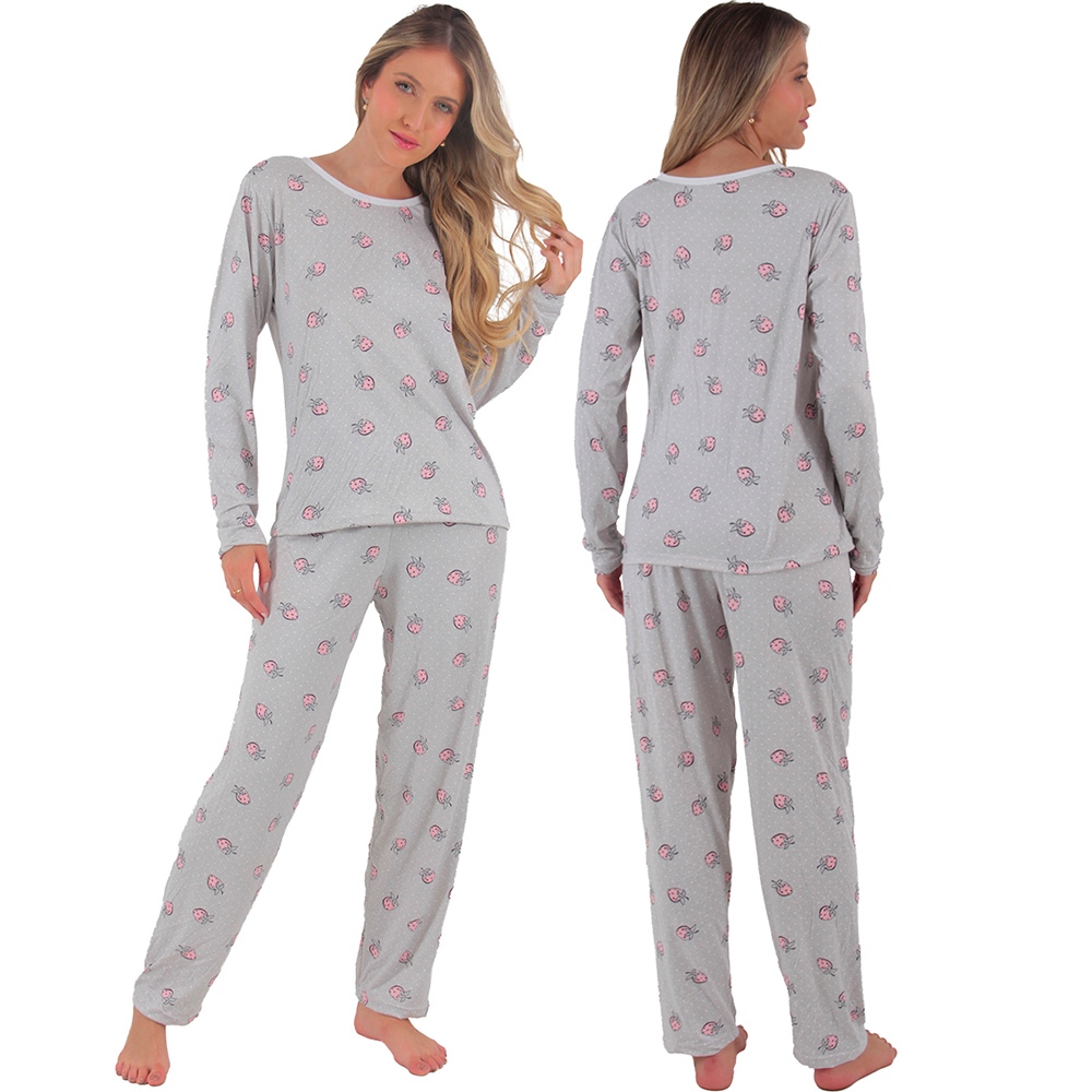 Pijama Feminino Outono Inverno Manga Longa Thay