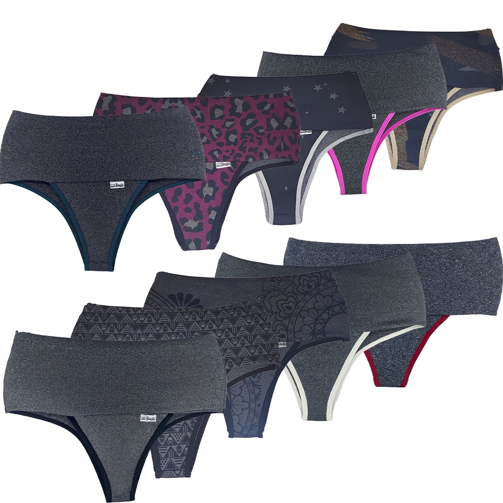Kit 10 Calcinhas Tangas Fitness Cós Alto Compressão Para Barriga Lingerie