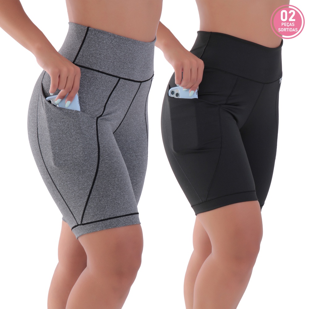 KIT 2 Bermudas Fitness Short Legging com Bolso Play