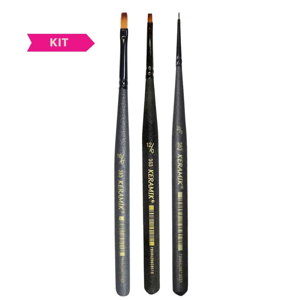 Kit Pincel Aquarela Chato Keramik Série 383 (03 Tamanhos) 10/0 - 12/0 - 20/0