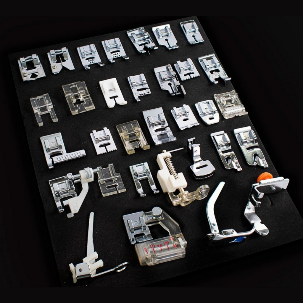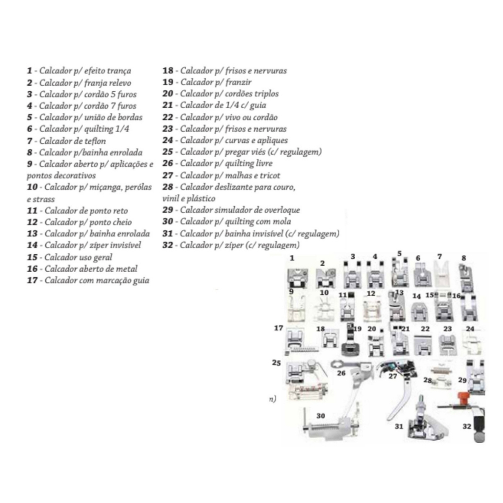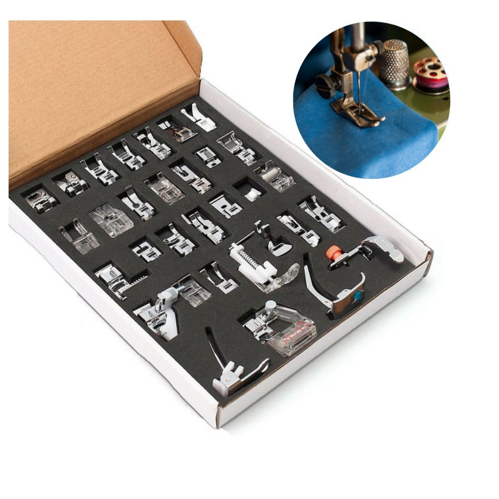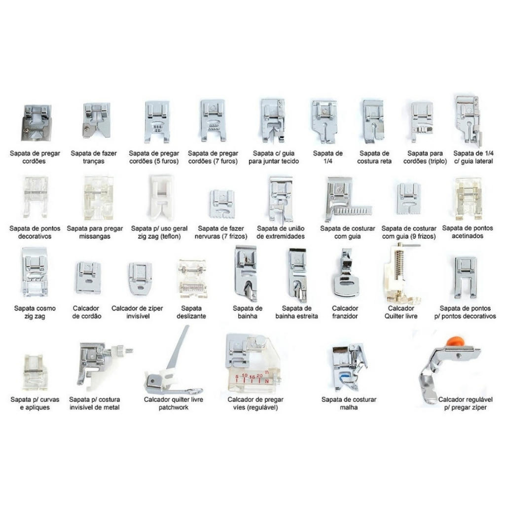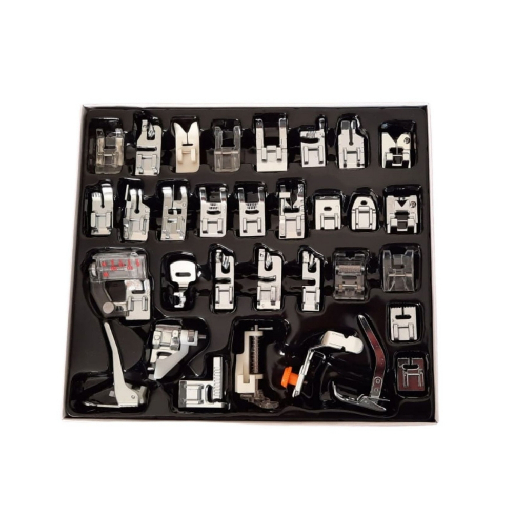 Pé Calcador Sapata Kit 32 Peças Maquina De Costura Doméstica Profissional Acessórios