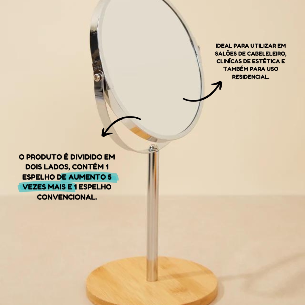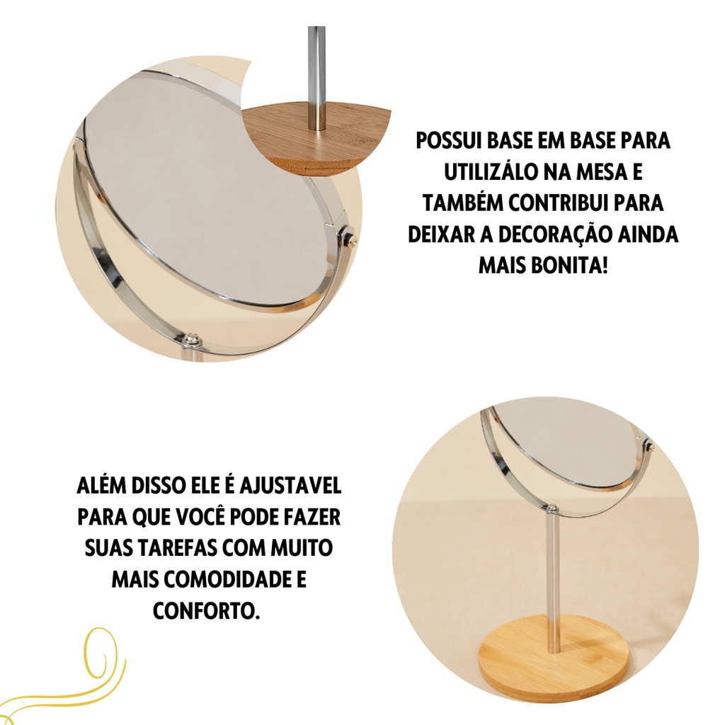 Espelho de Aumento com Base de Bambu 35,5cm Mimo Style