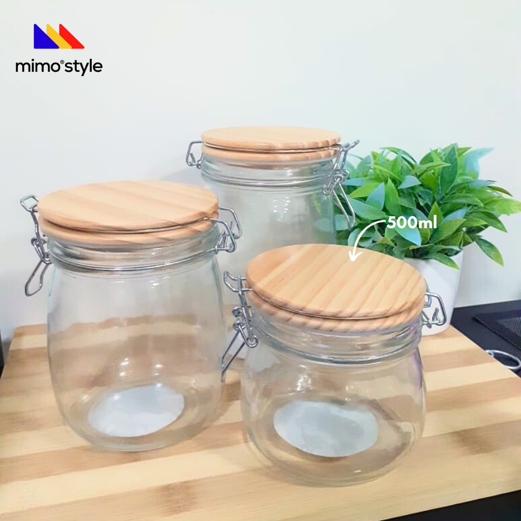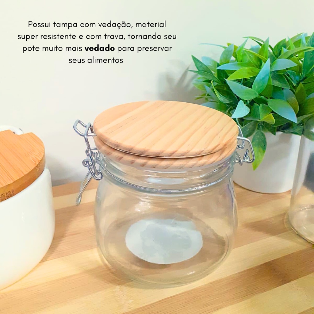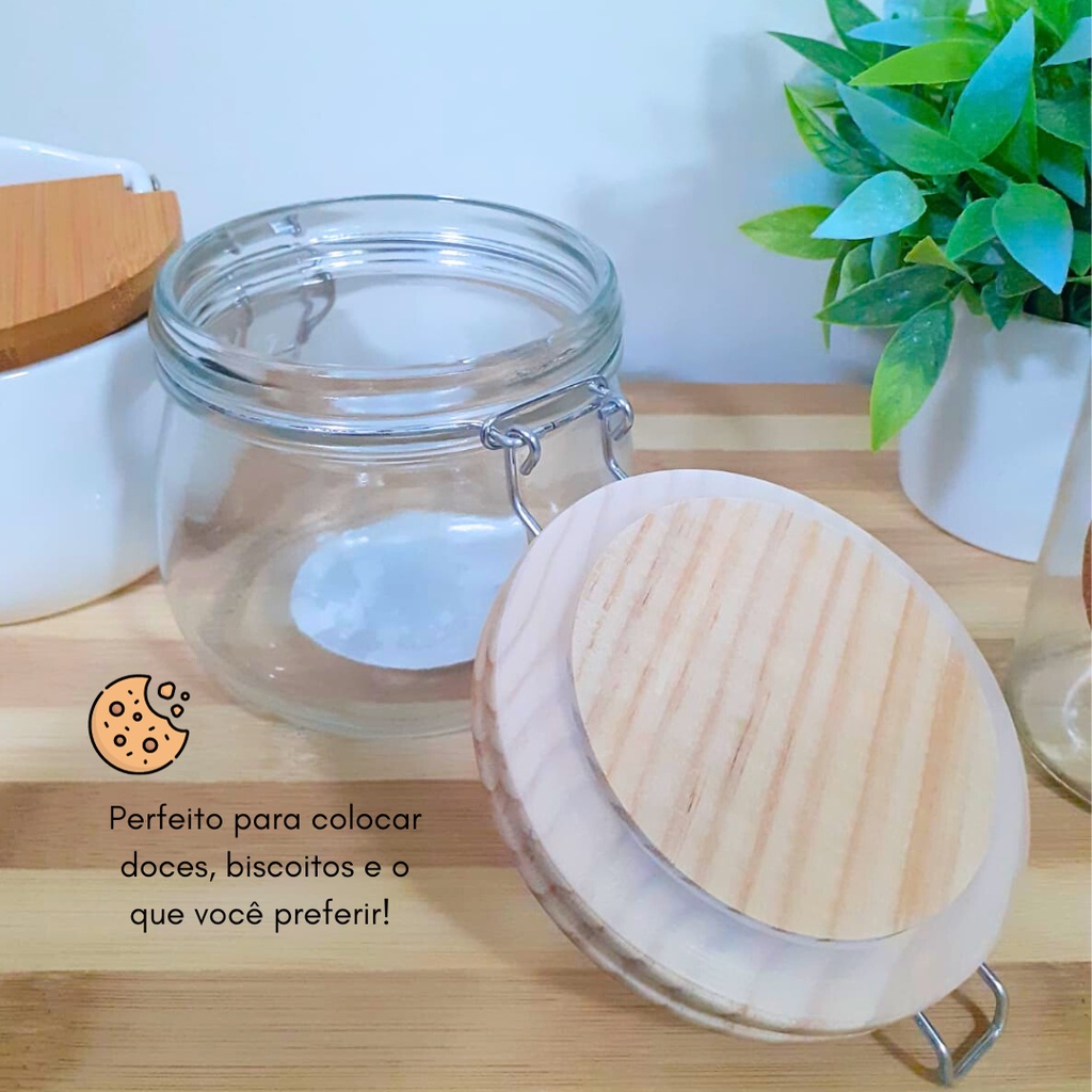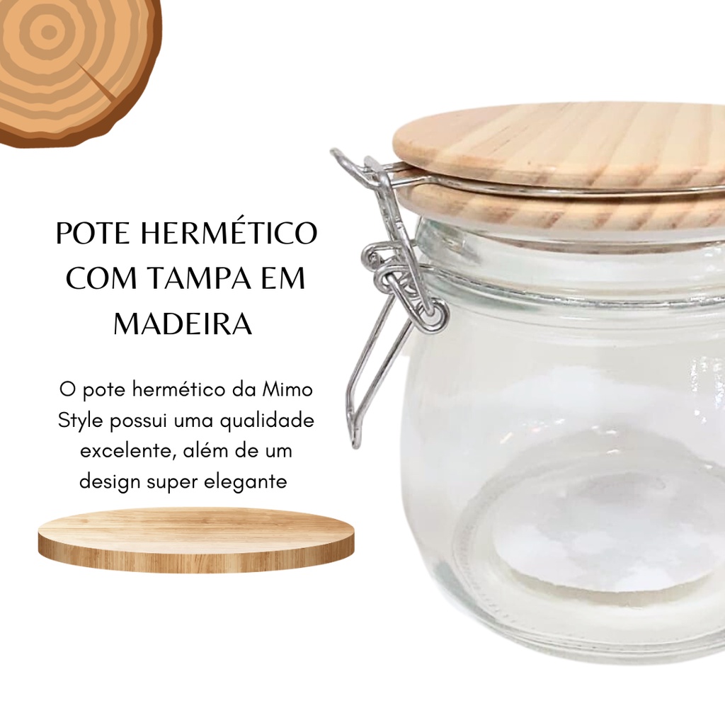 Pote Hermético Tampa Madeira Vidro 500ml c/ Trava Mimo Style