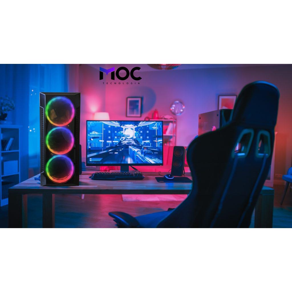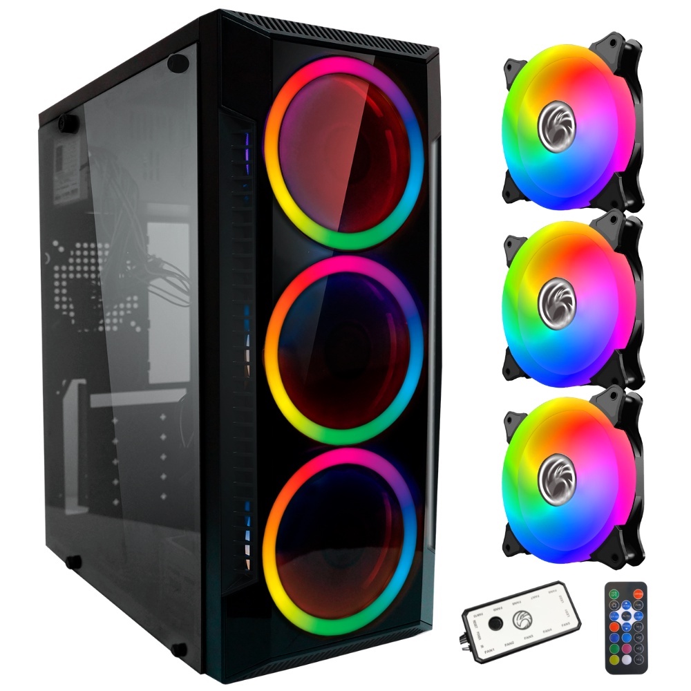 Gabinete Gamer C3147 Com Lateral de Vidro + Kit 3 Cooler Argb KDL Led Duplo