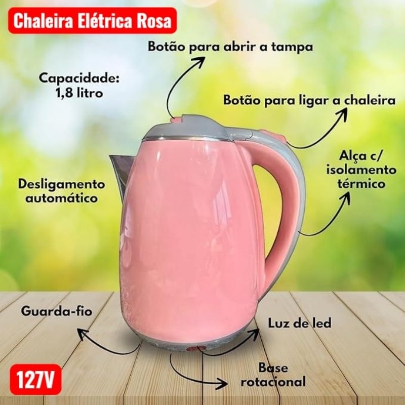 Chaleira elétrica BAK Rosa ,Preta 1.8 lts 110 volts