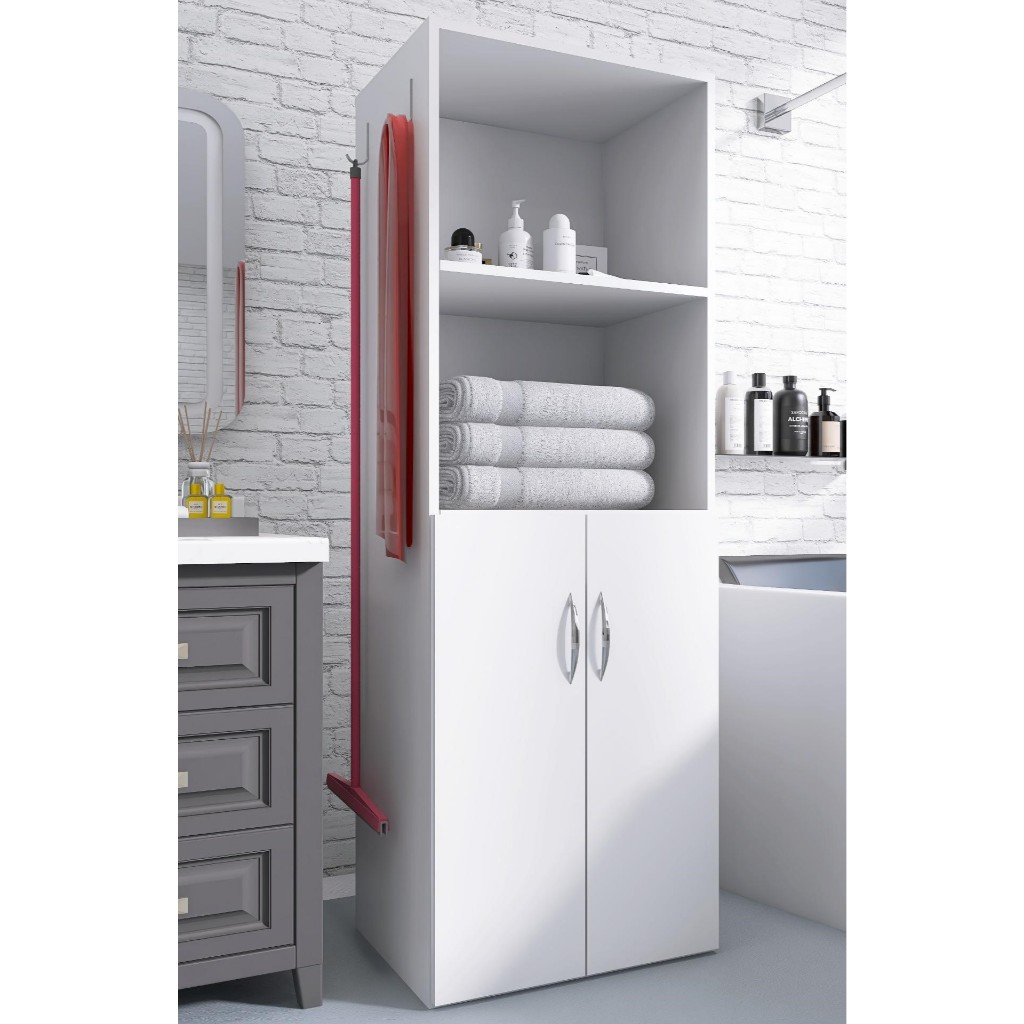 Armário Estante Multiuso 2 Portas Lavandeira Porta Vassoura Nichos 4 Prateleiras Limpeza Balcão Organizador Balcão