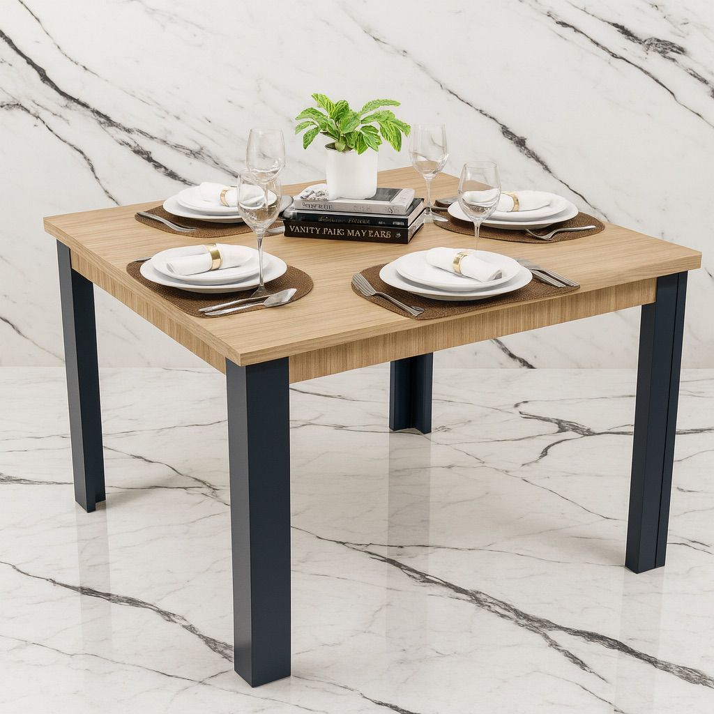 QUEIMA DE ESTOQUE - Mesa de Jantar Industrial 90cm – Estrutura de Madeira p/ 4 Lugares