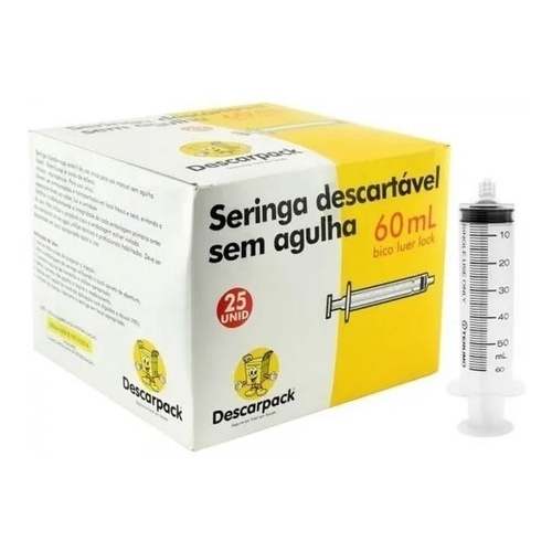 Seringa Descartável 60 Ml Luer Lock C/25 Und - Descarpack