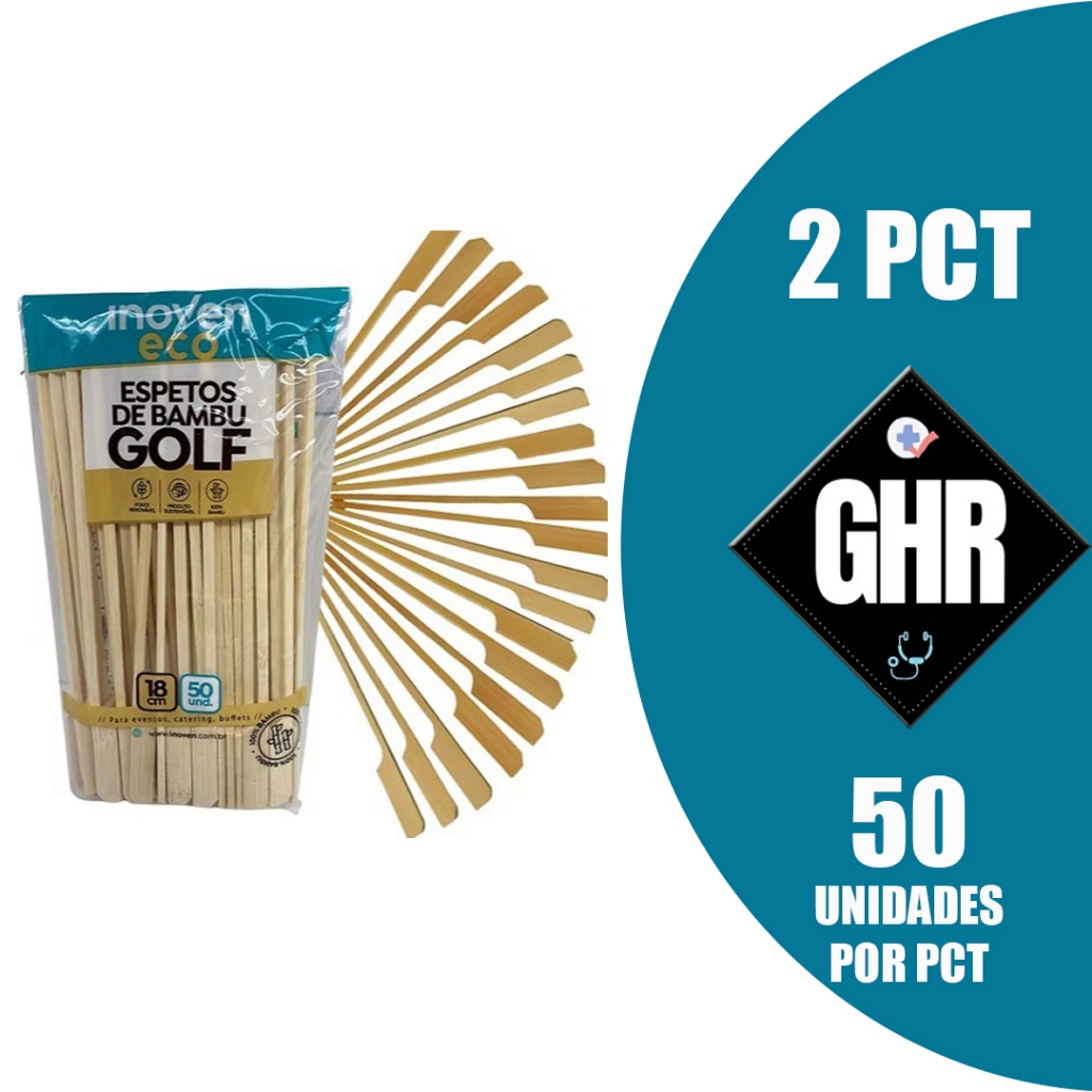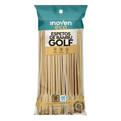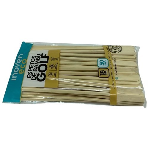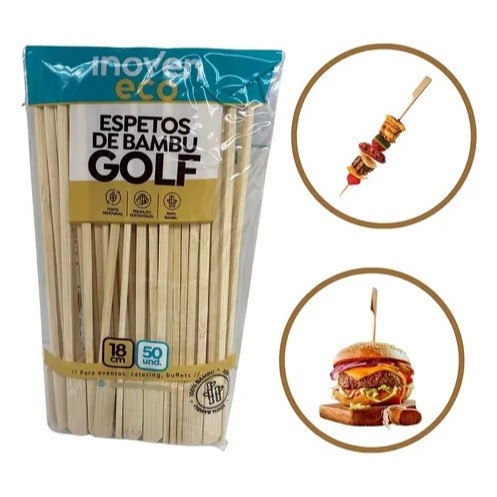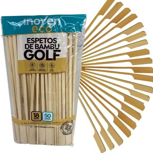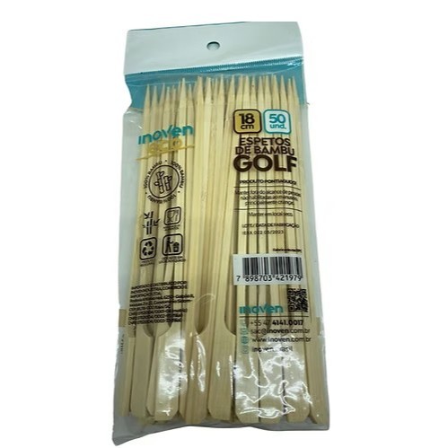 Kit 100 Uni Espeto Bambu Golf 18cm Natural Para Petisco