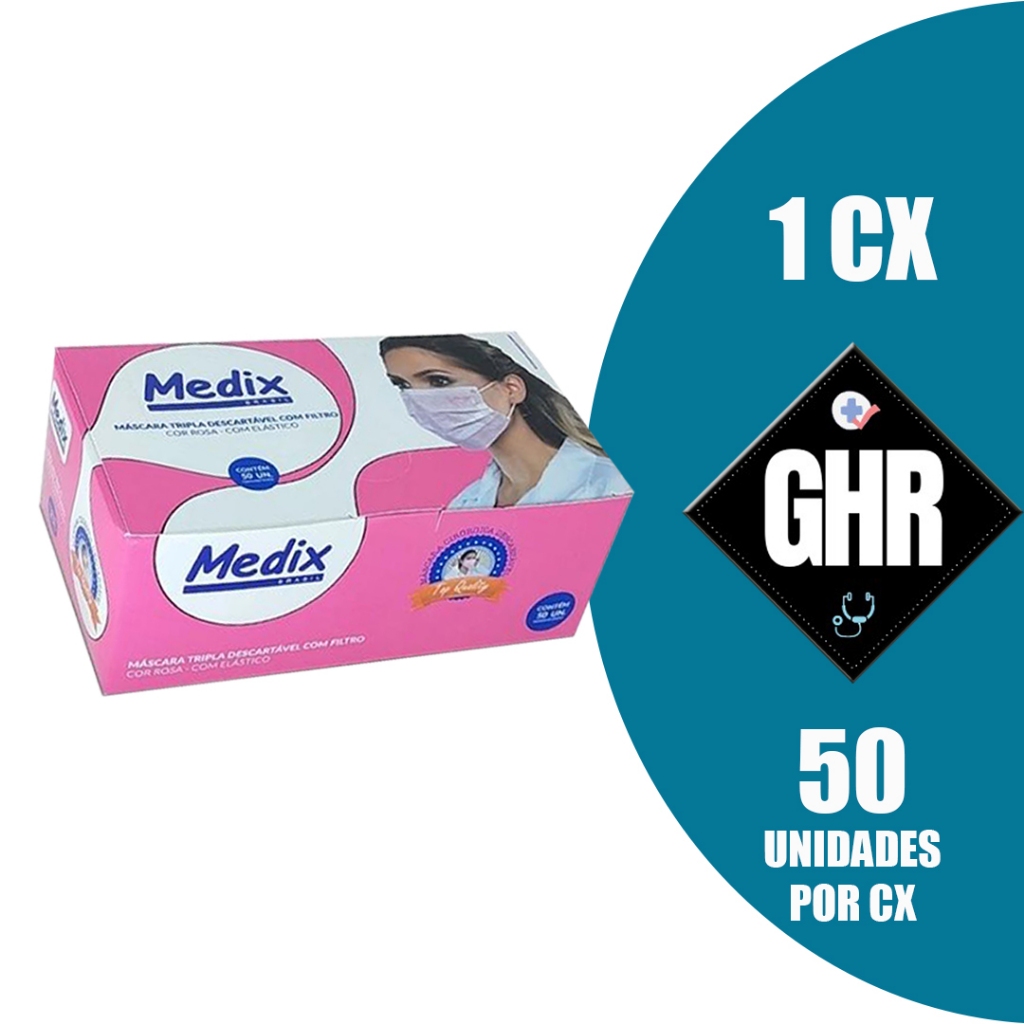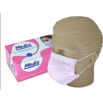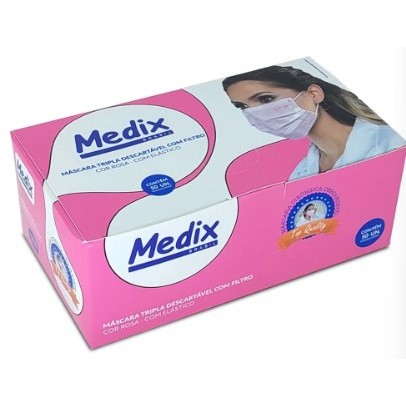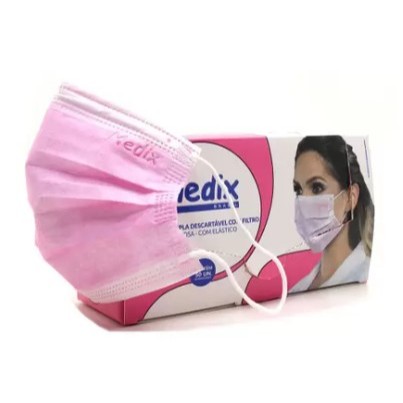 Máscara Descartável Tripla Camada C/elástico Caixa C/50 Pçs Rosa - MEDIX
