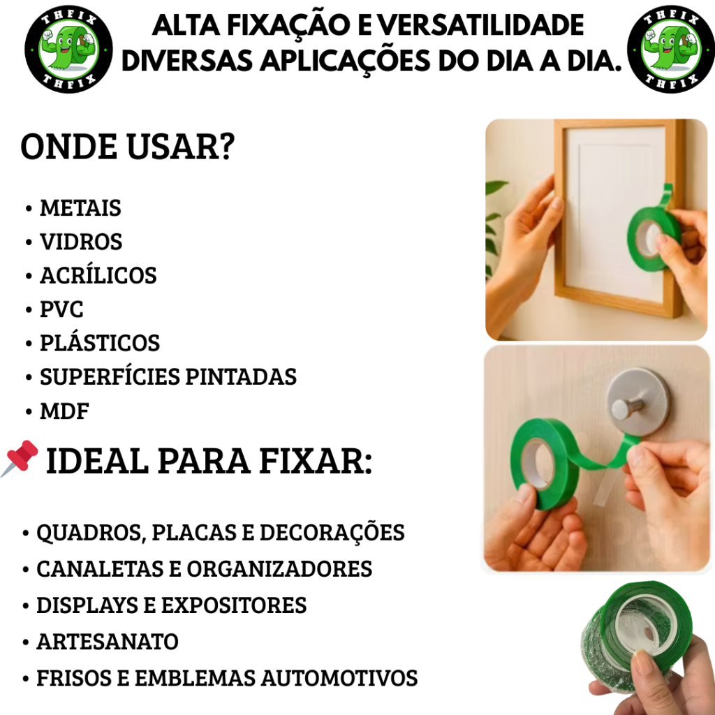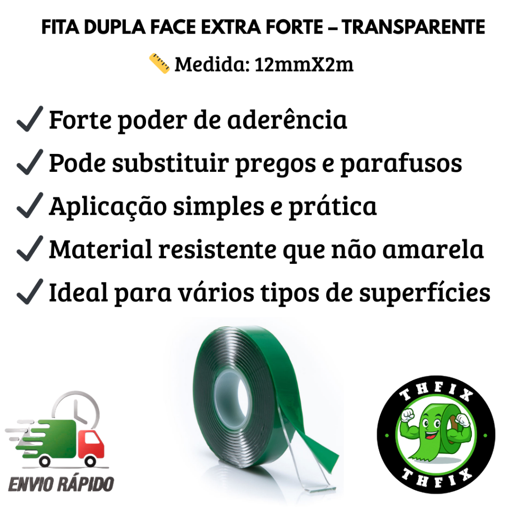 6 Fita Dupla Face Extra Forte Transparente Rolo 09mm x 1M Adesiva Acrílica Resistente Pvc Ripado Cabeceira Quadros