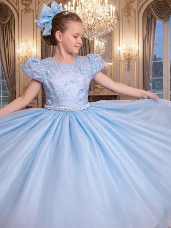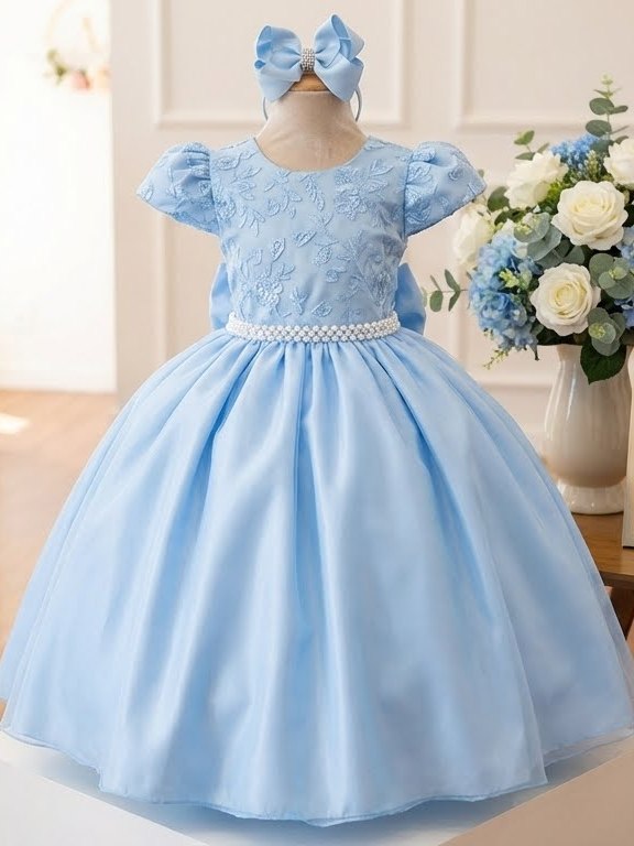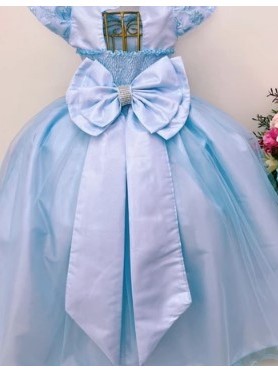 vestido daminha azul com busto de renda e forro em tule dBlue
