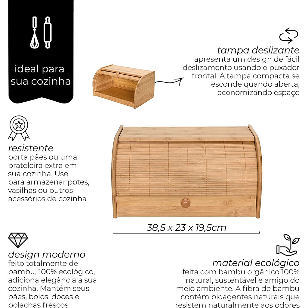 Porta Paes Com Tampa Retratil de Bambu Ecokitchen Mimo Style