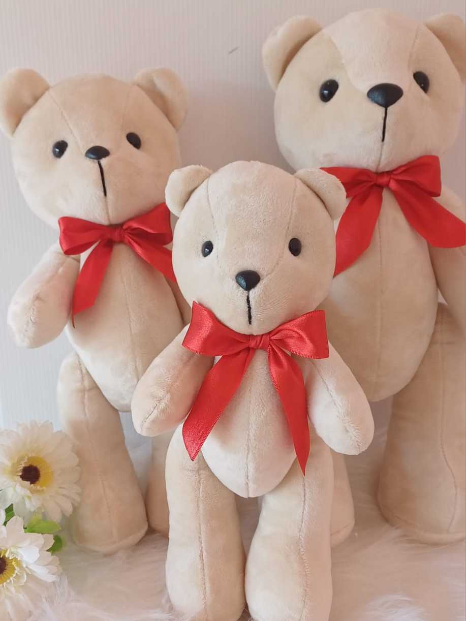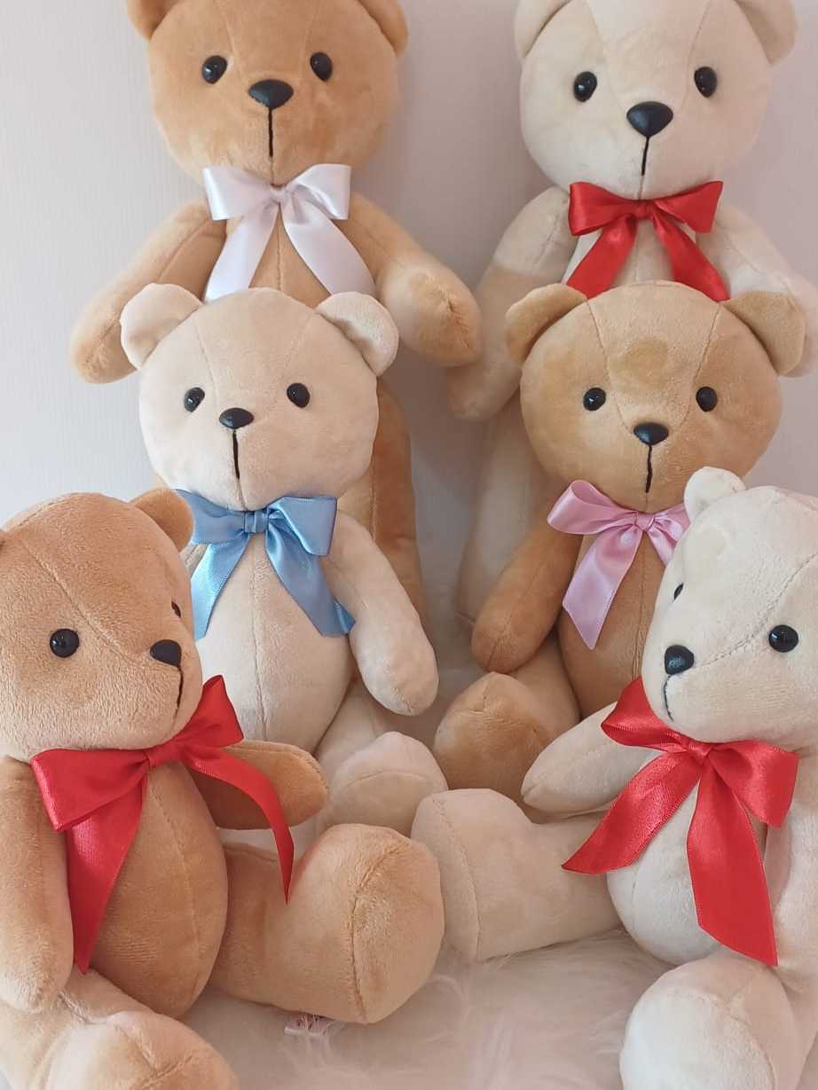 Urso de Pelúcia Clássico Articulado 20cm/24cm/28cm/35cm- Com Laço de Cetim (UNIDADE) CREME