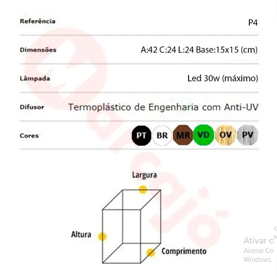 Luminária Poste Balizador Jardim Lustre Colonial P4 Preto