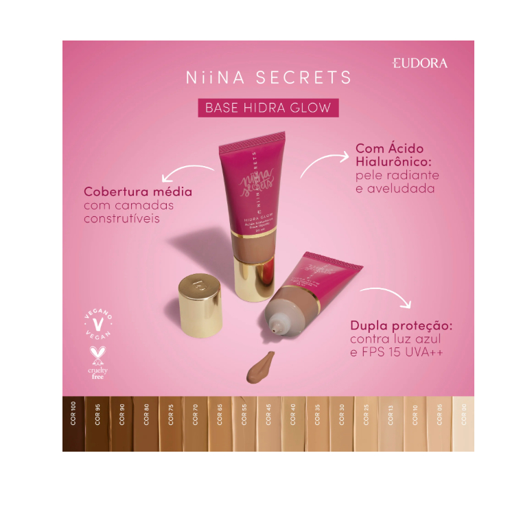 Base Hidra Glow Niina Secrets 30ml Eudora - Escolha seu Tom Envio Imediato