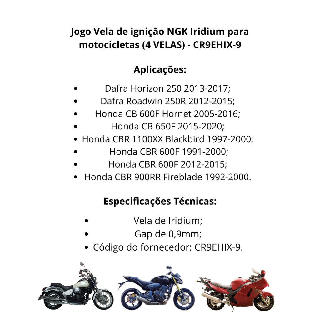 4 Jogo de velas ignição CR9EHIX9 Honda Hornet Cbr600 Cb 650 2012 A 2020 Original NGK