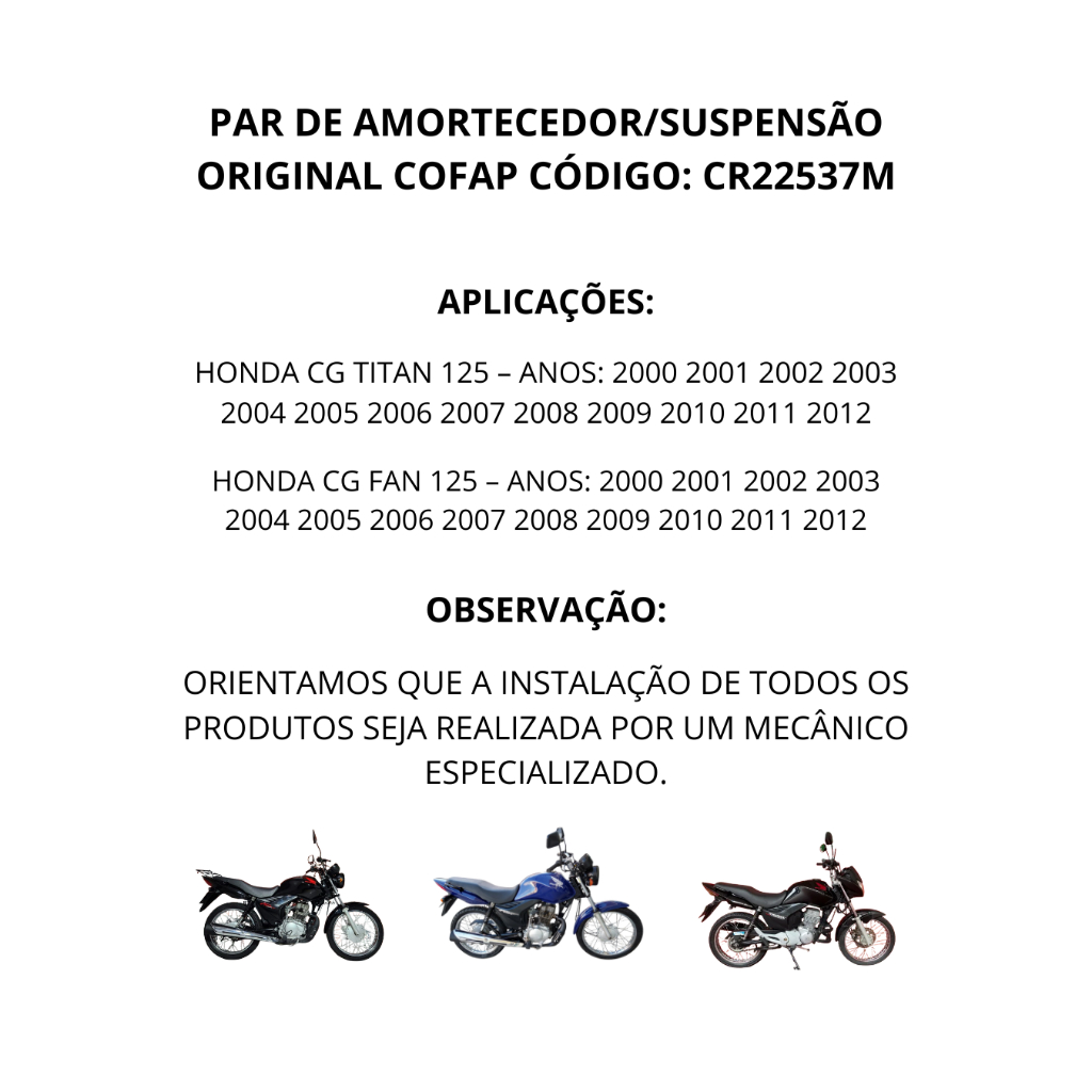 Par Amortecedor Honda Fan Titan 125 2000 2001 2002 2003 2004 2005 2006 2007 2008 2009 2010 2011 2012