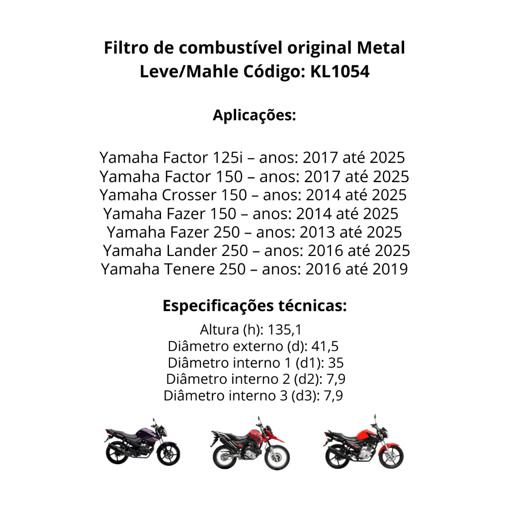 Filtro Combustível Yamaha Factor Crosser Fazer Lander Tenere 125i 150 250 de 2013 até 2025 Mahle