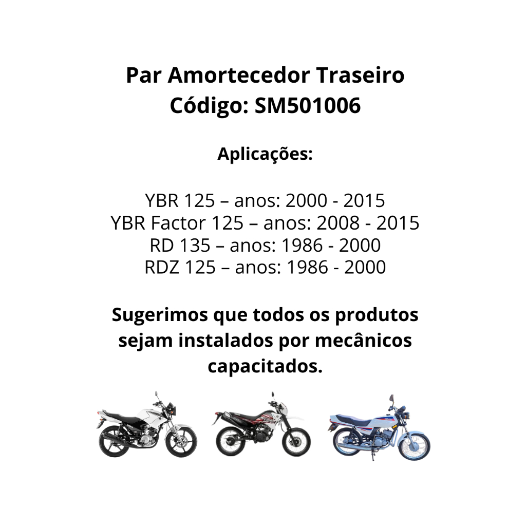 Par de Amortecedor Traseiro Yamaha YBR Factor 125 2000 até 2015